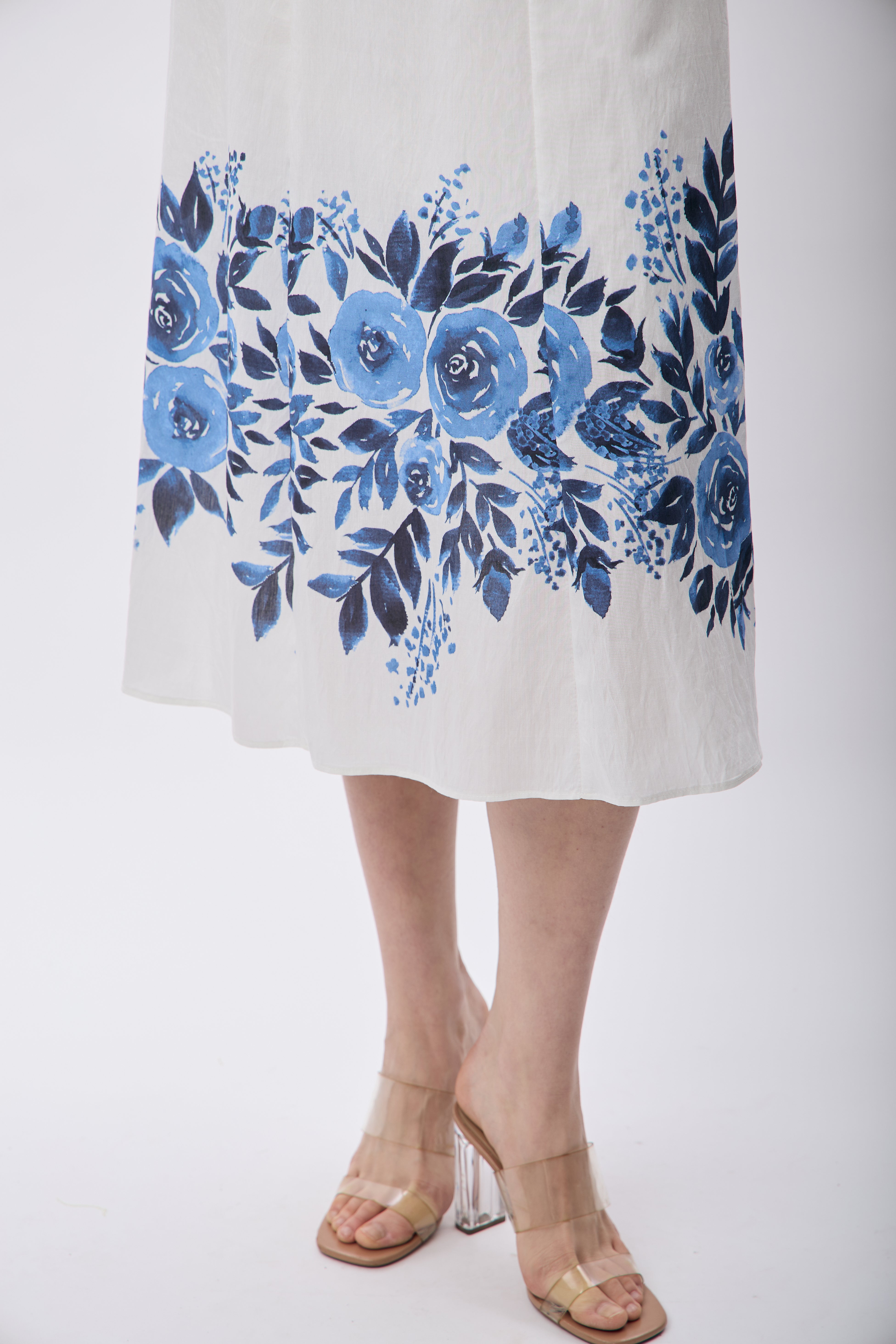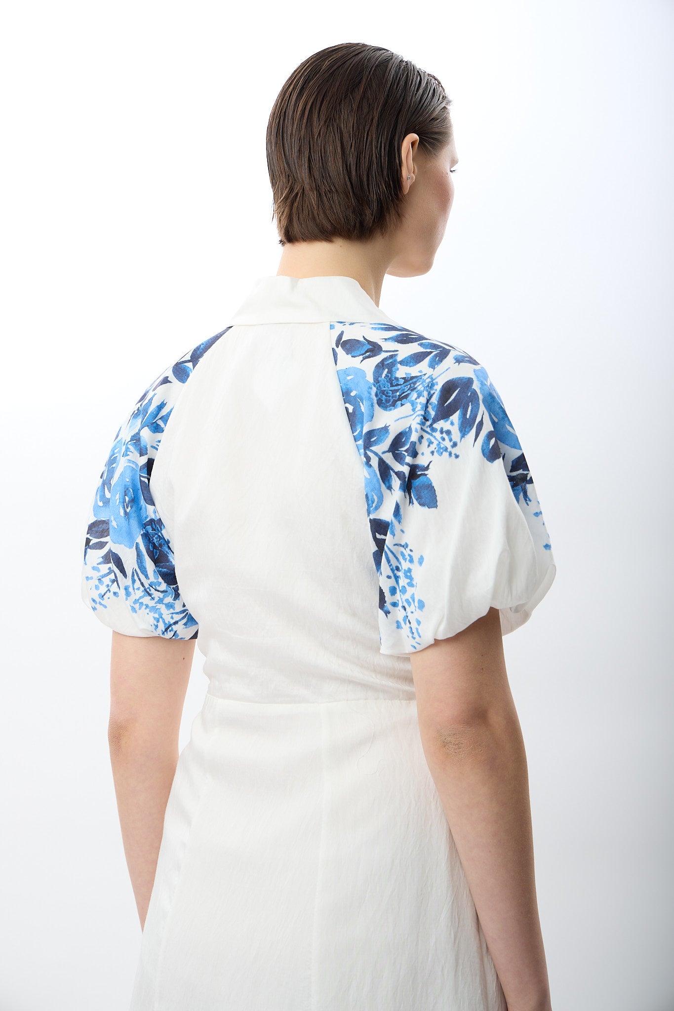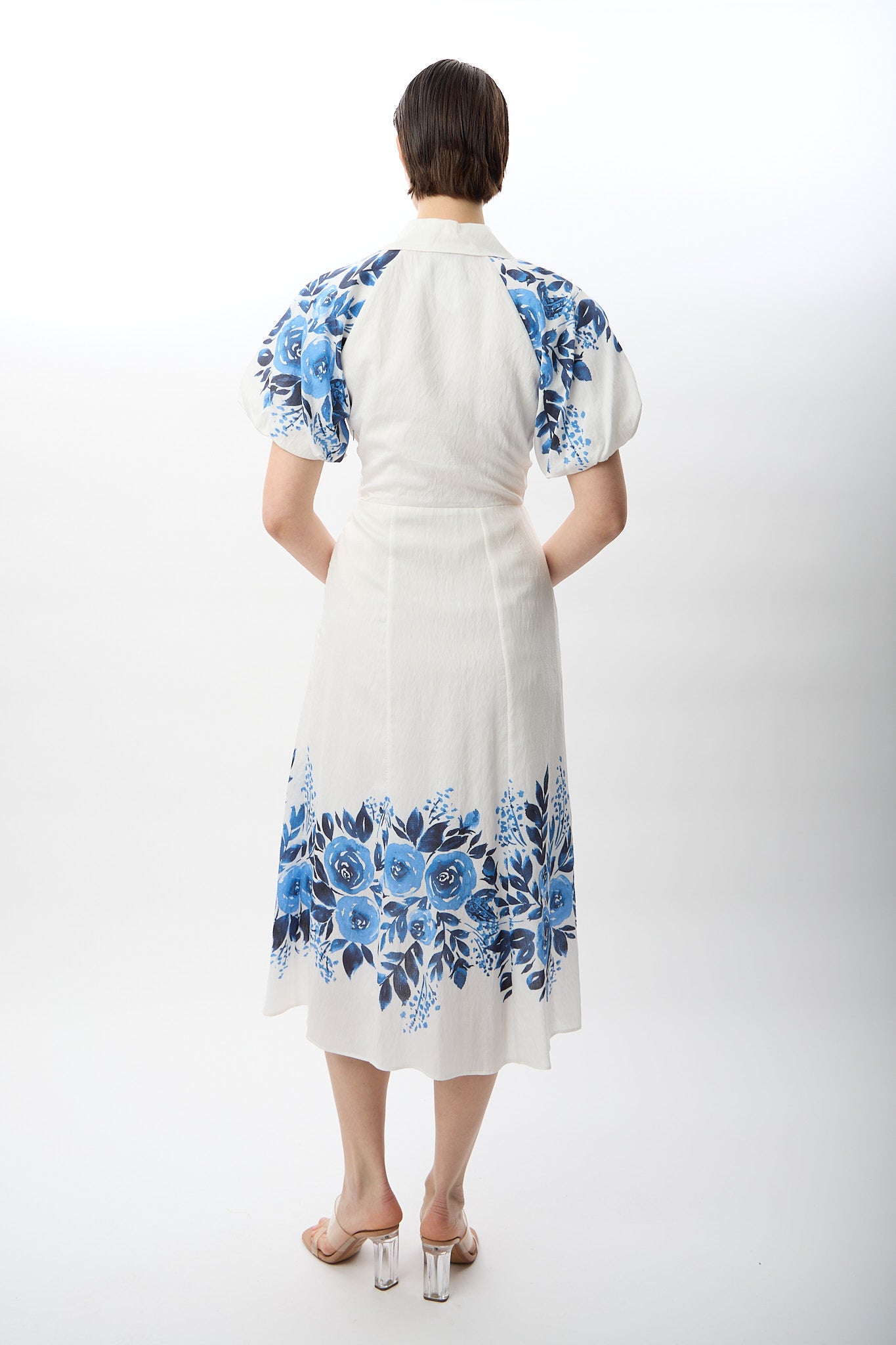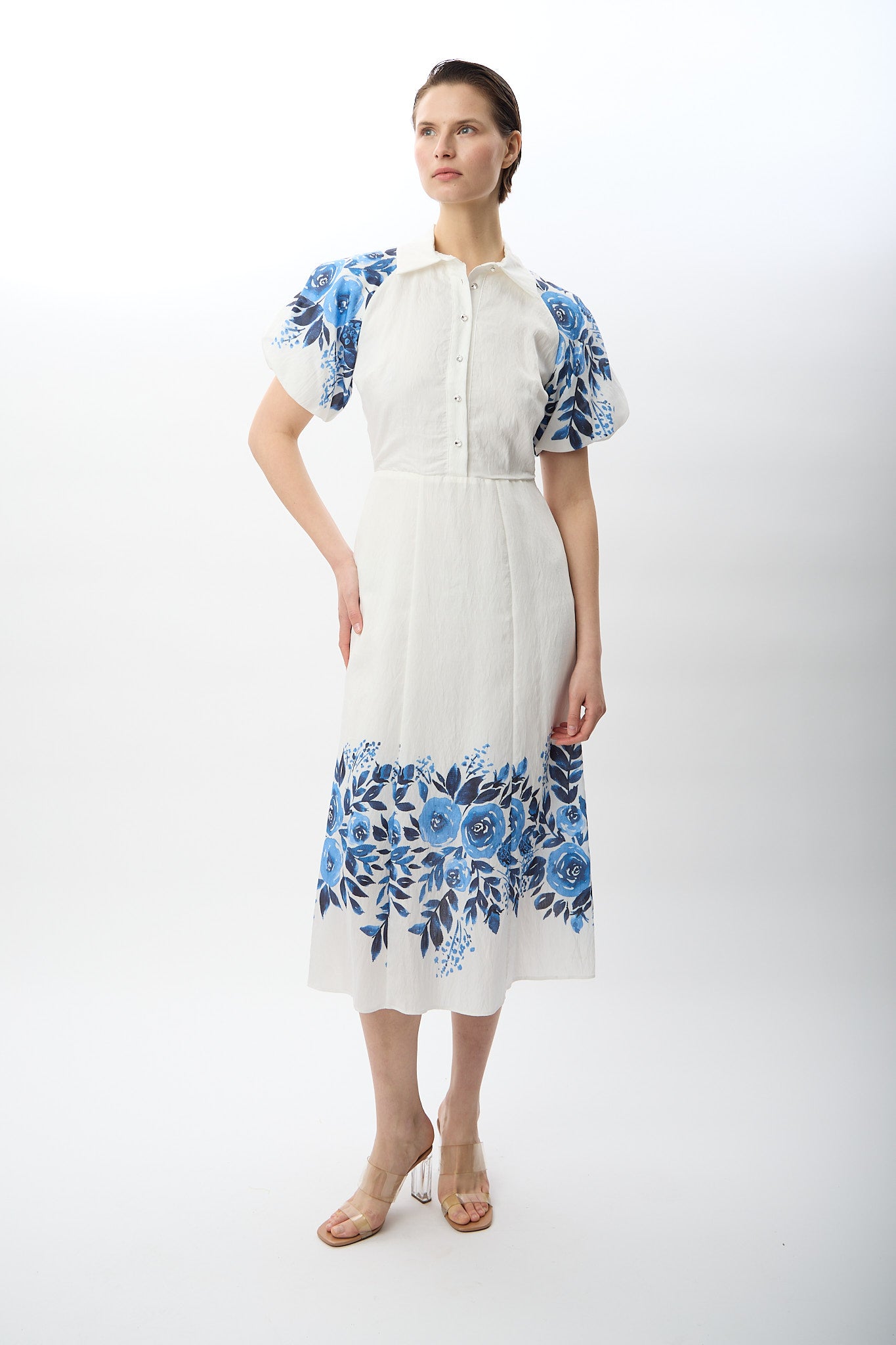 Balon Kollu Desenli Maksi Elbise (Ekru)