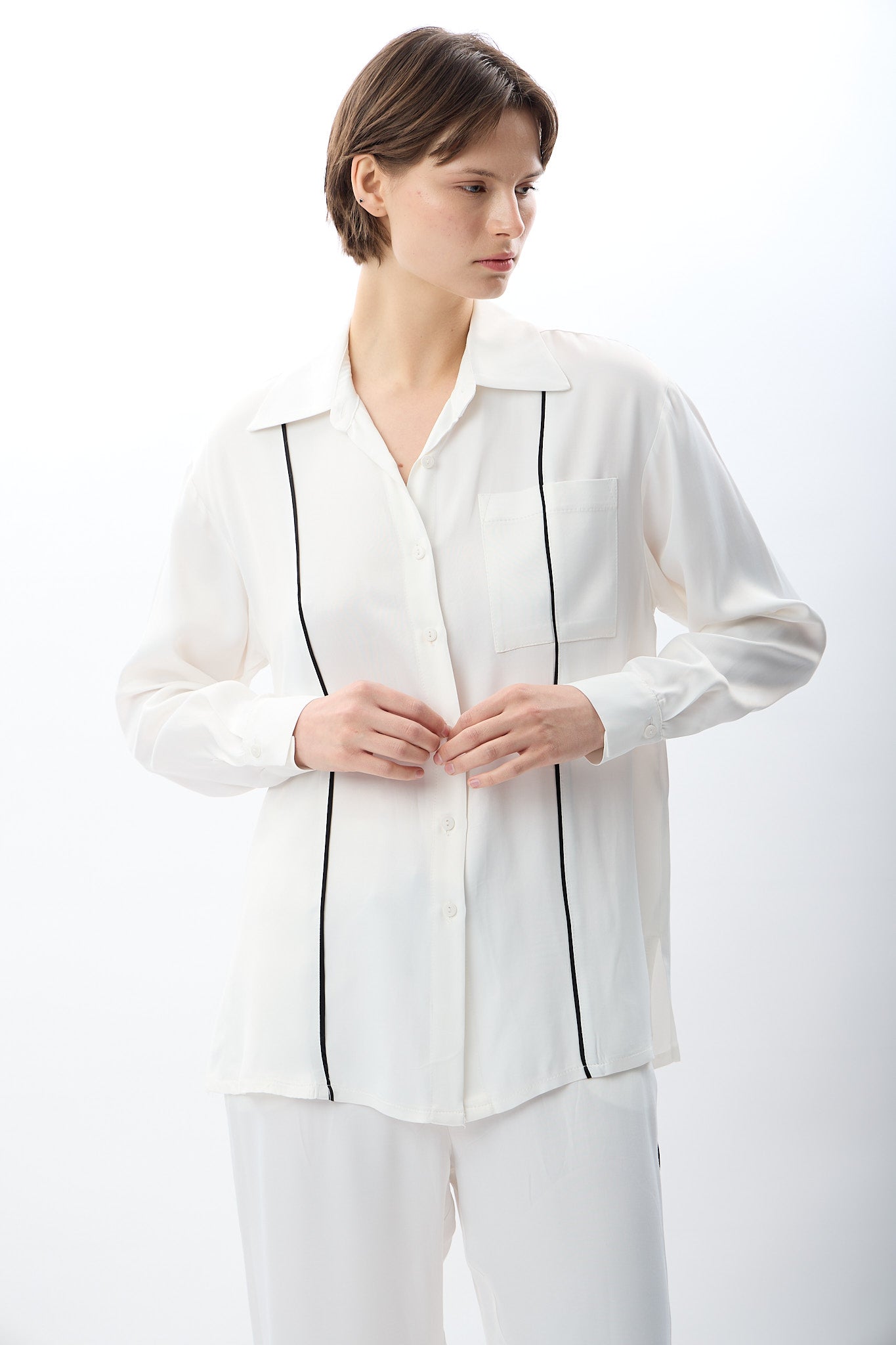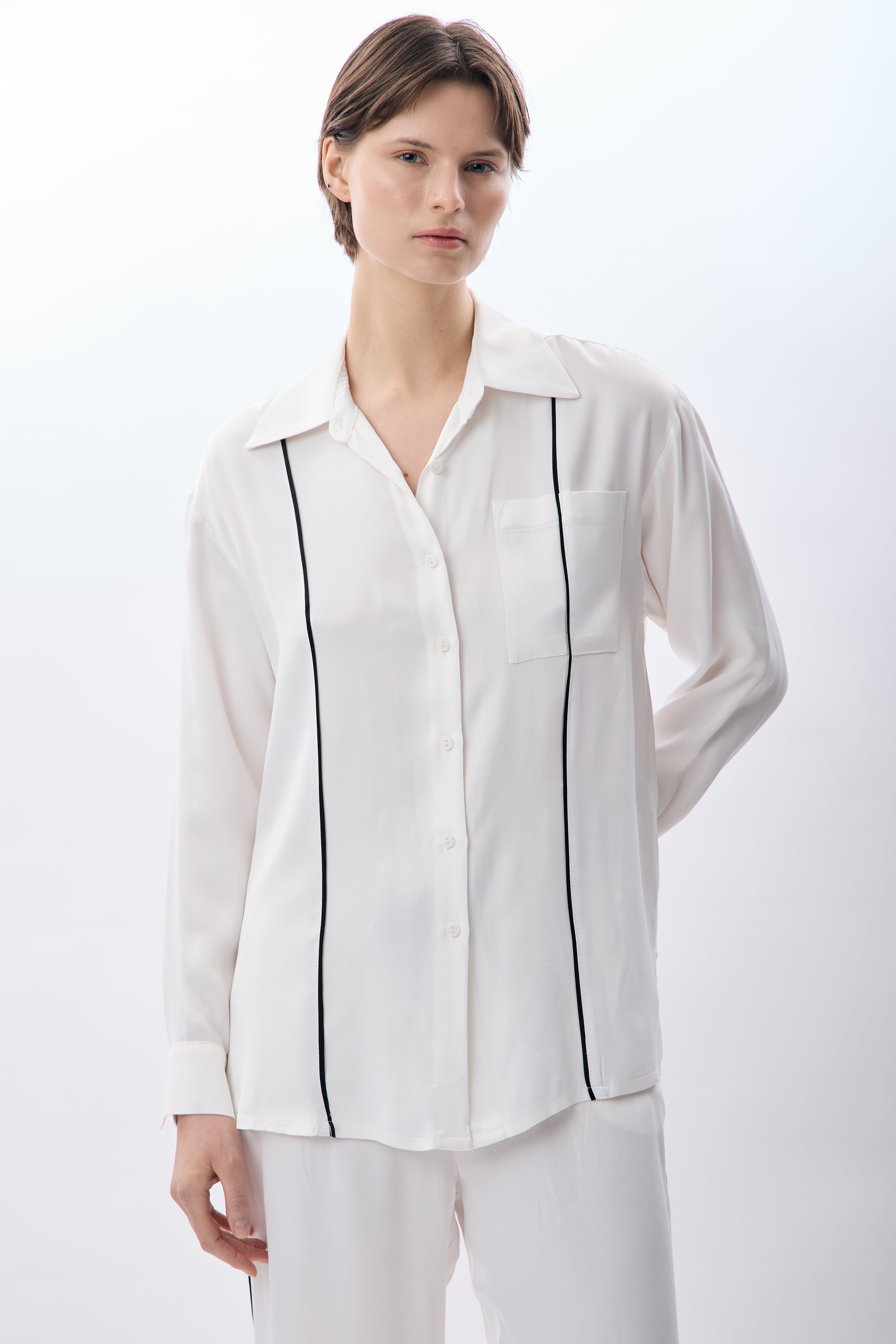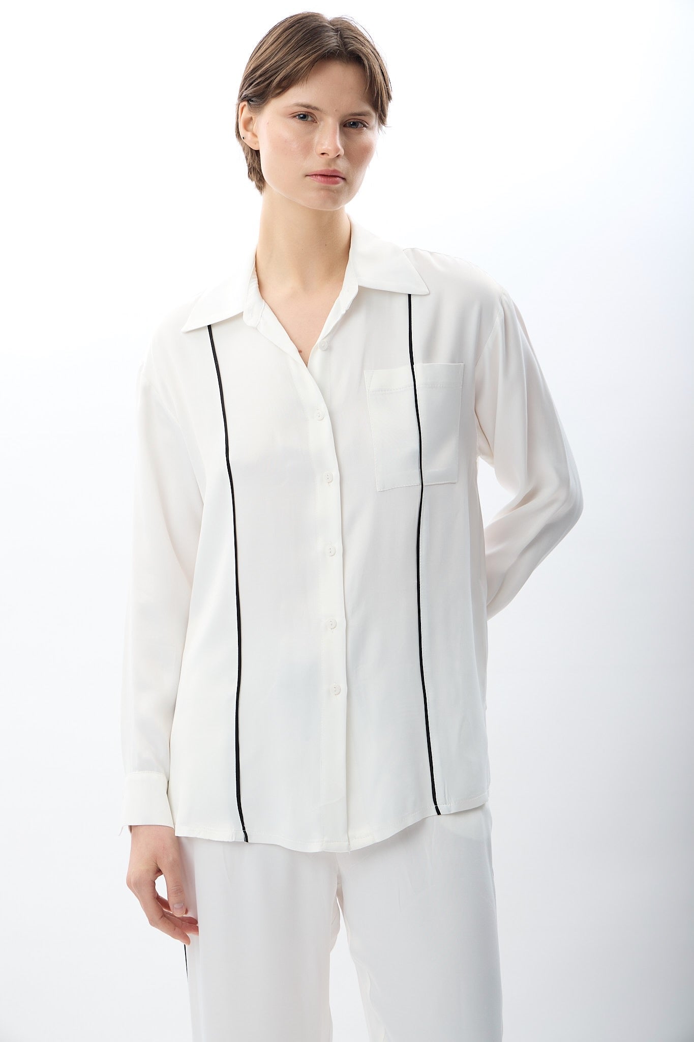 Uzun Kollu Tek Cepli Gömlek (Ekru)