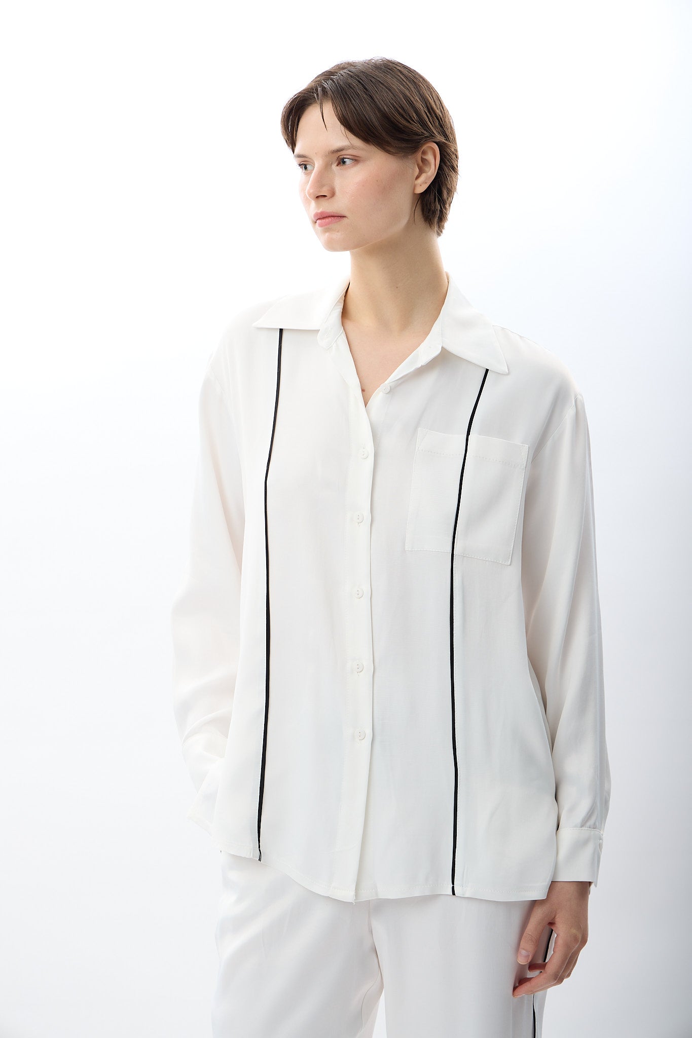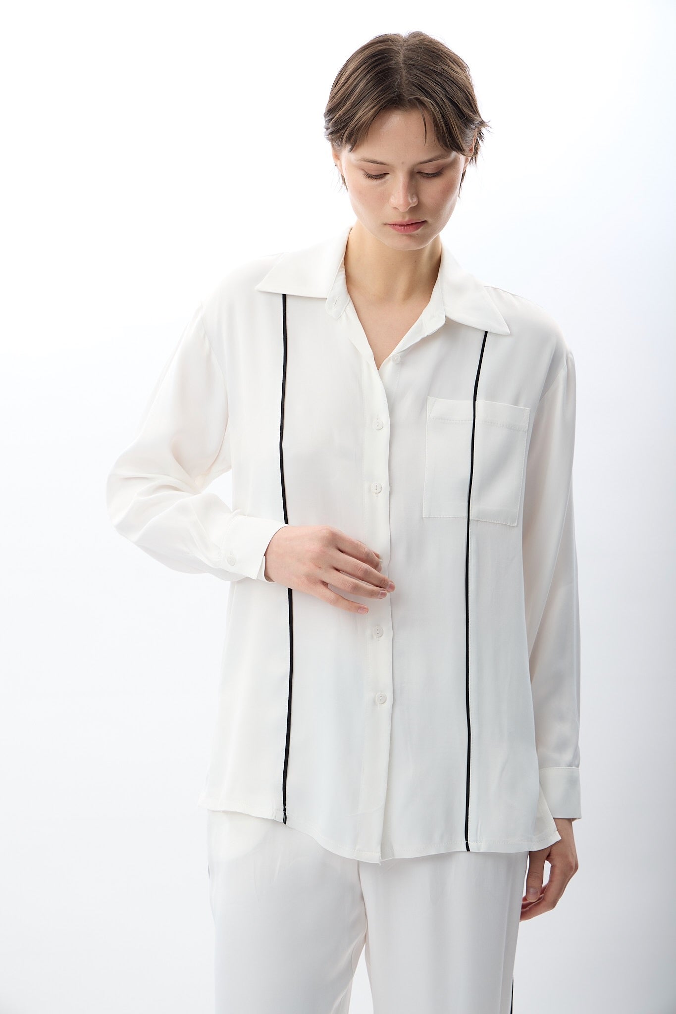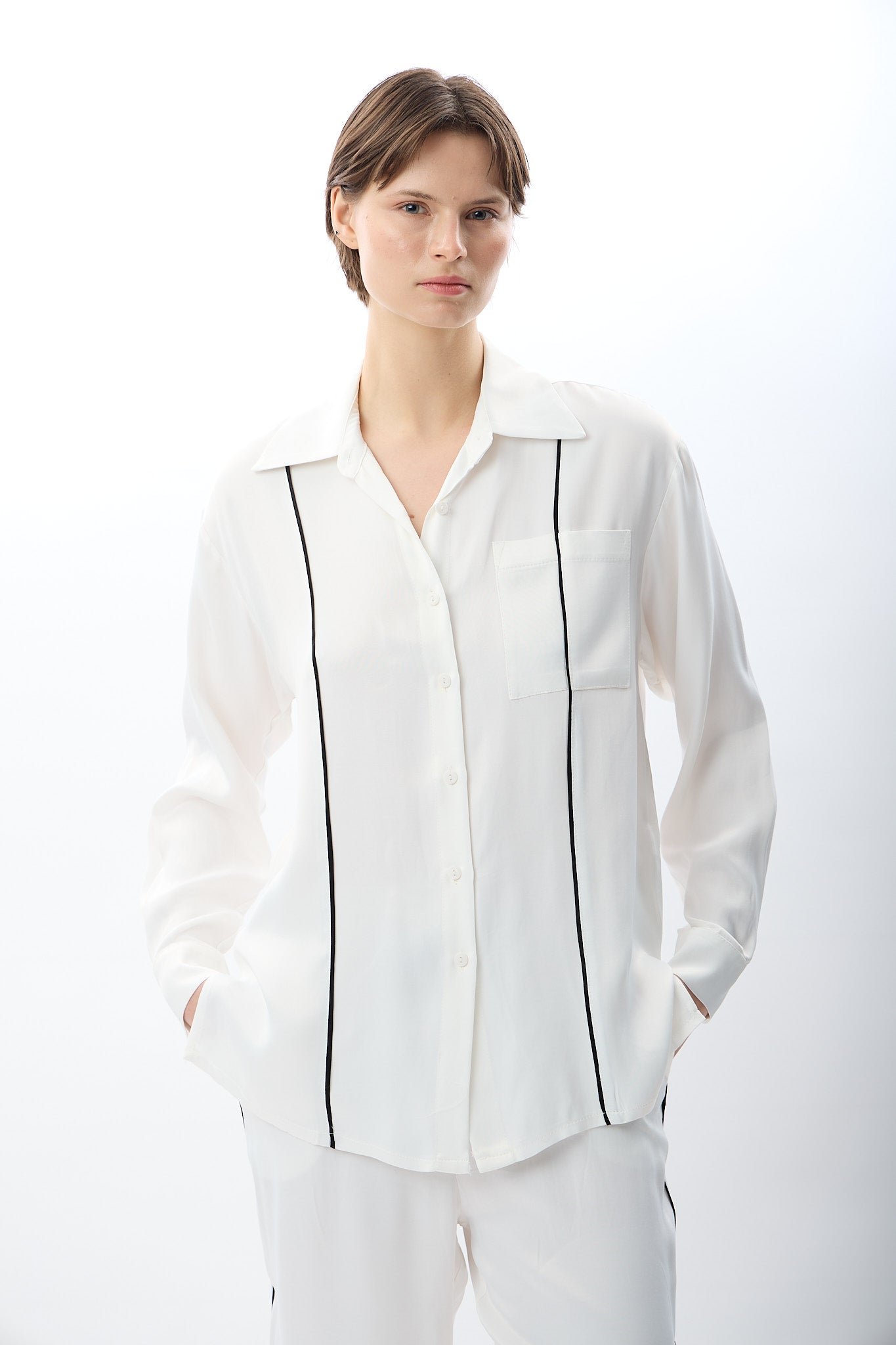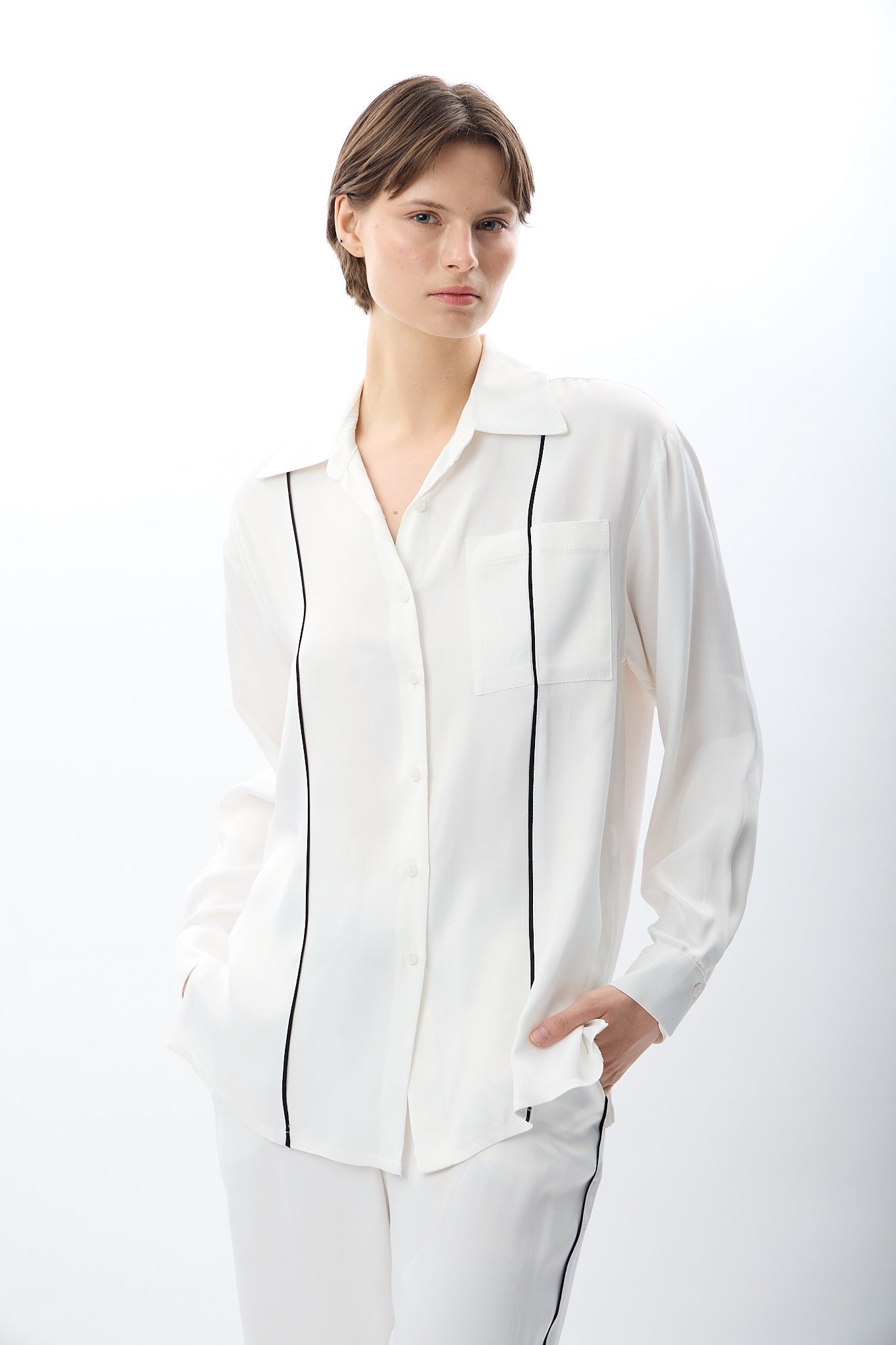 Uzun Kollu Tek Cepli Gömlek (Ekru)