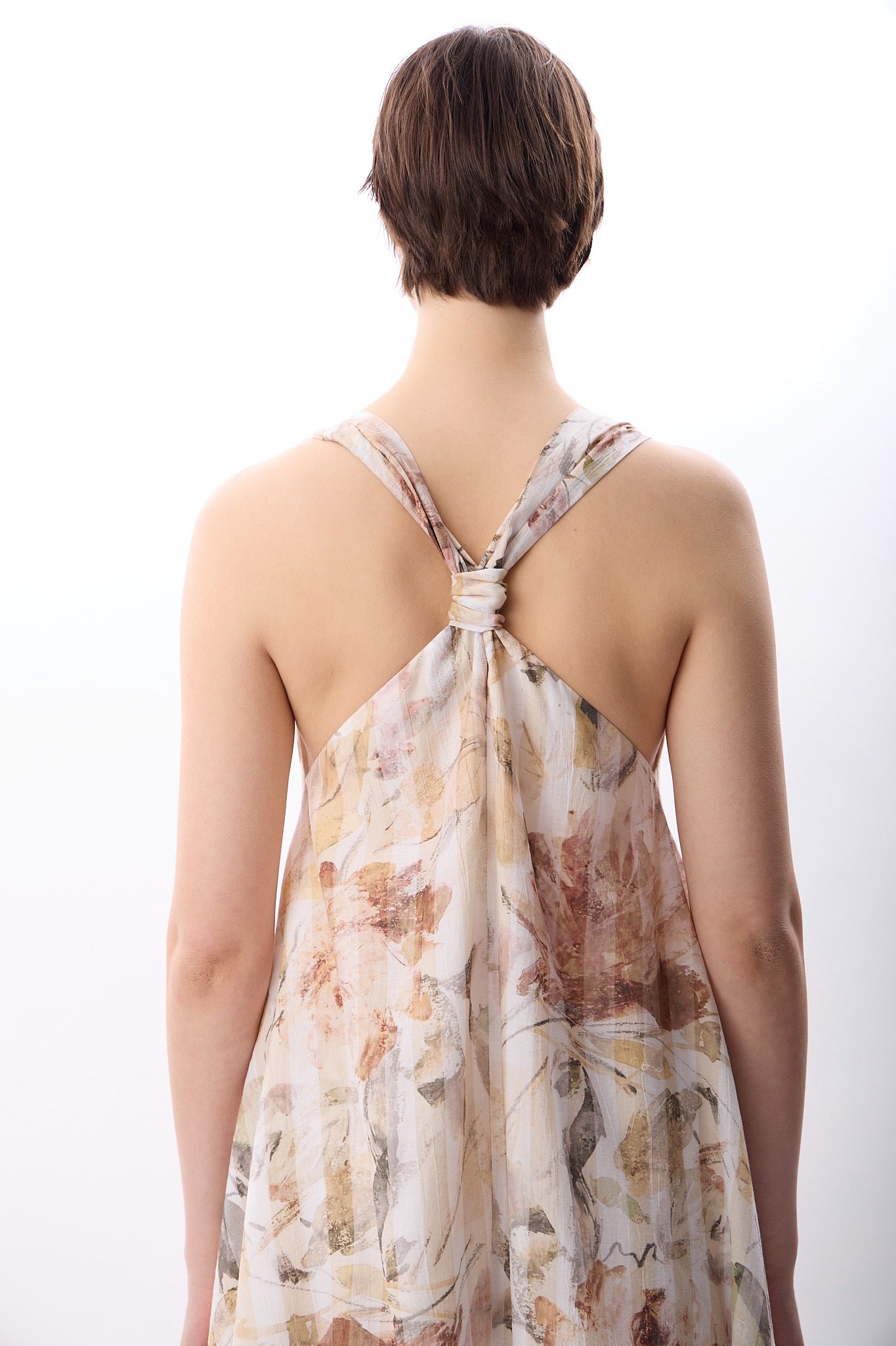 Desenli ve Dökümlü Maxi Elbise (Bej)