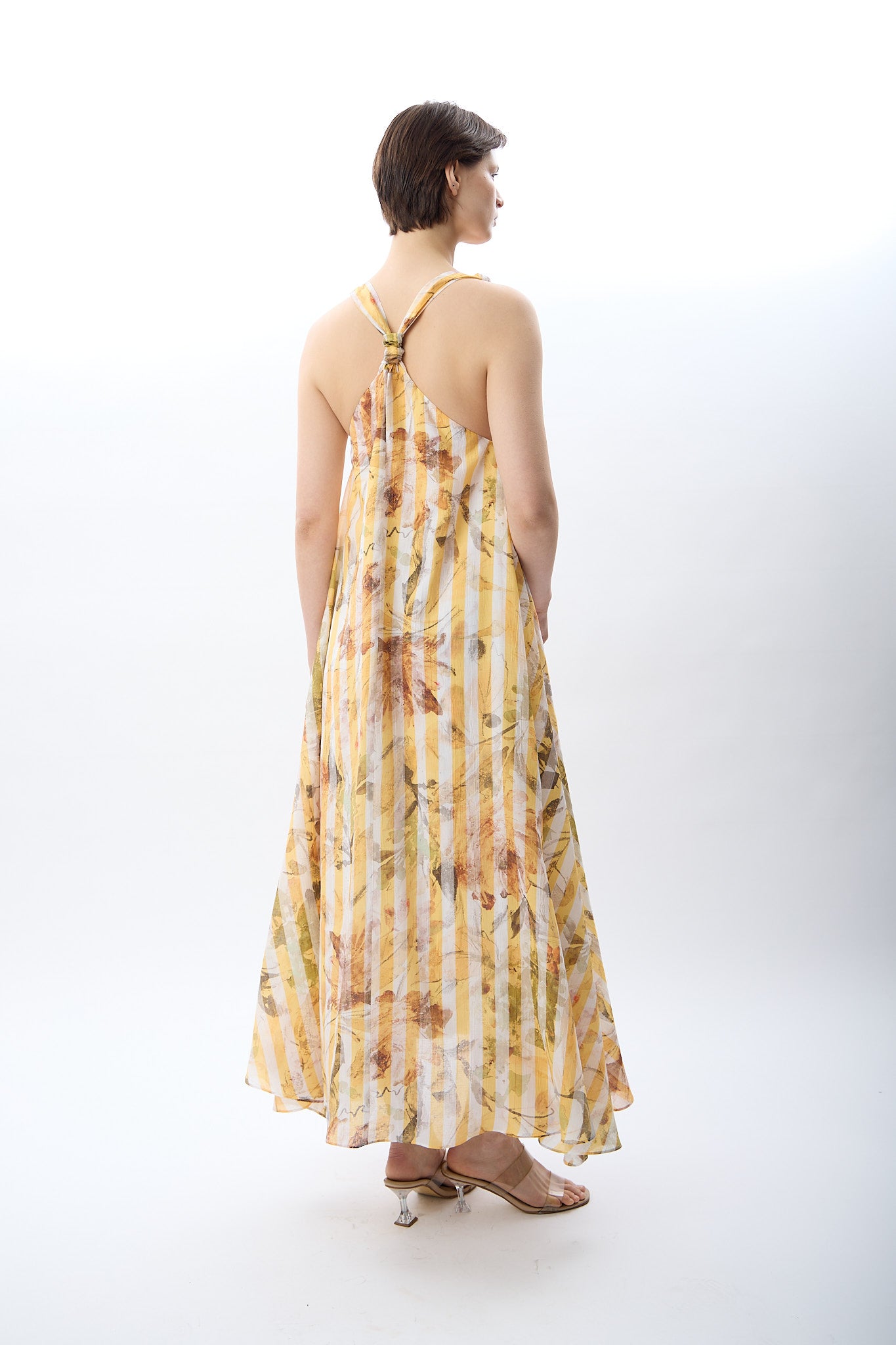 Desenli ve Dökümlü Maxi Elbise (Sarı)