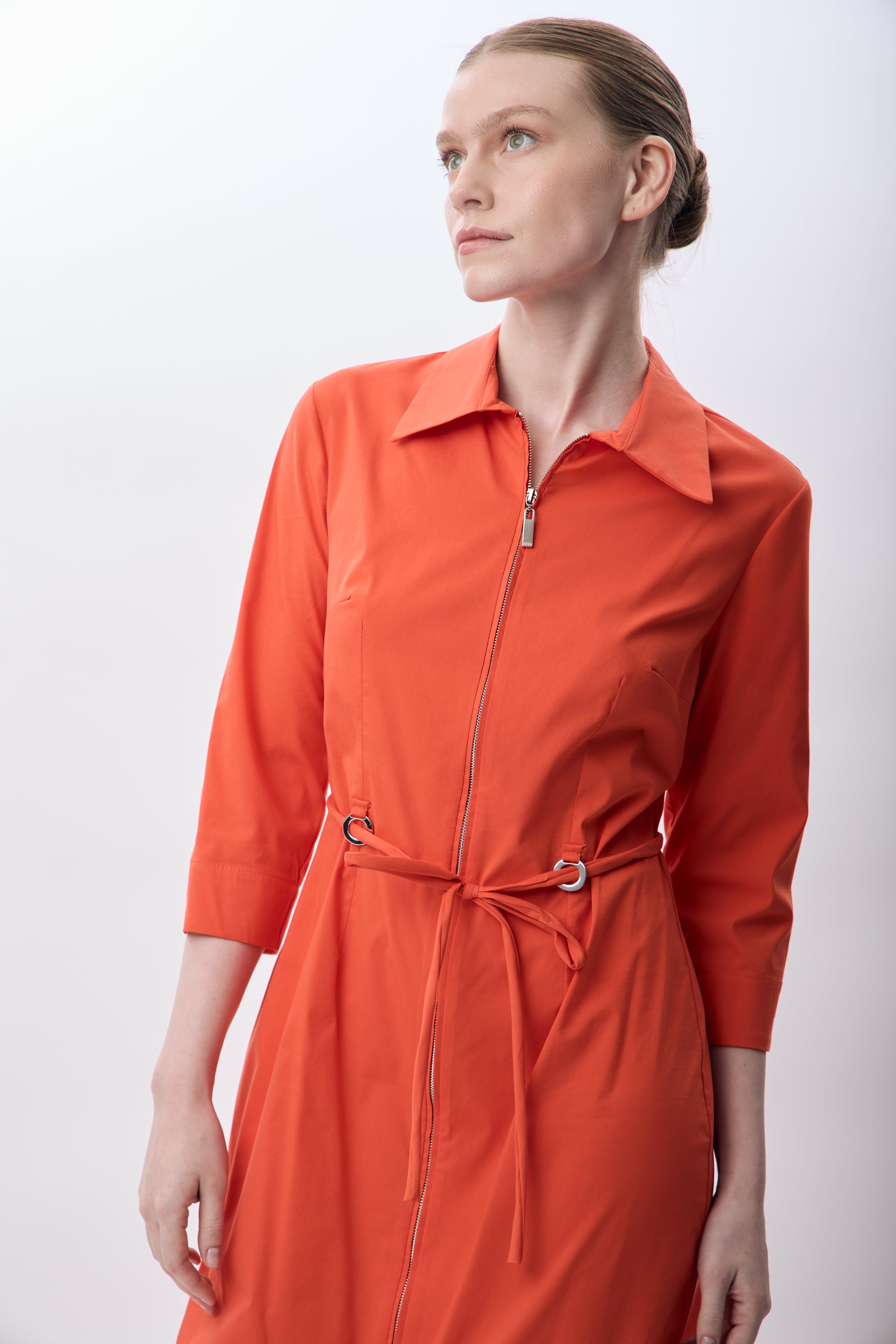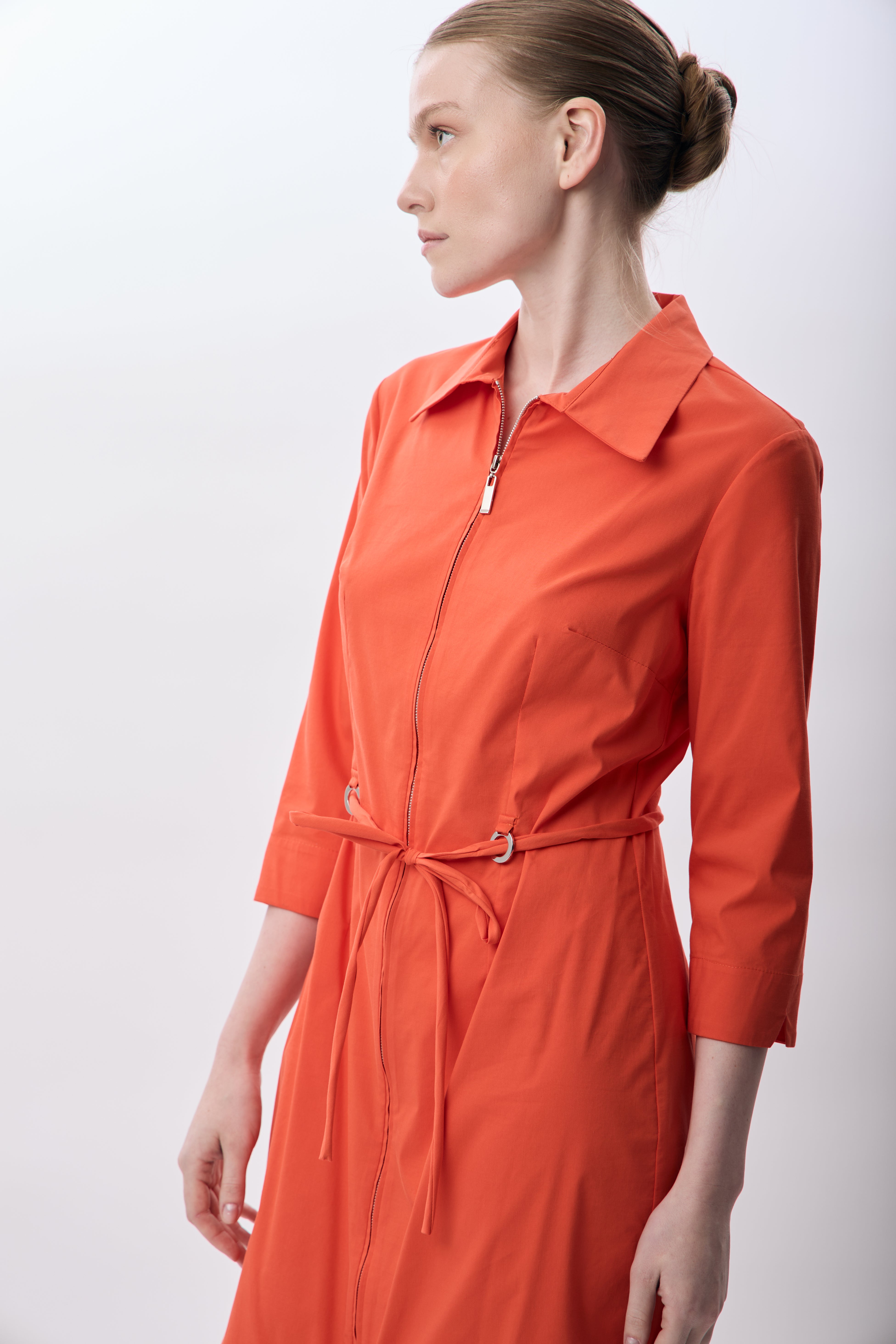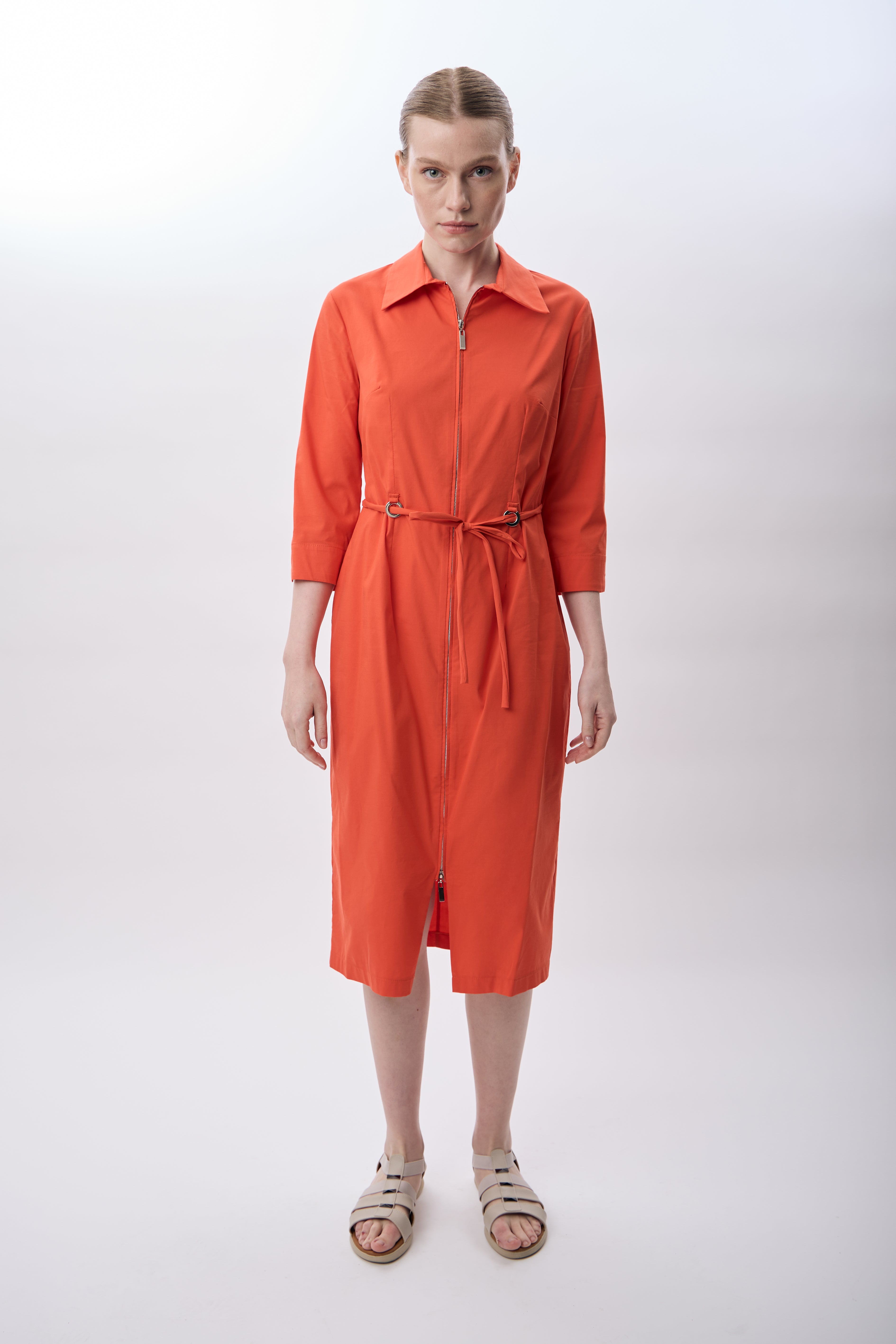 Fermuarlı Gömlek Yaka Elbise (Mercan)