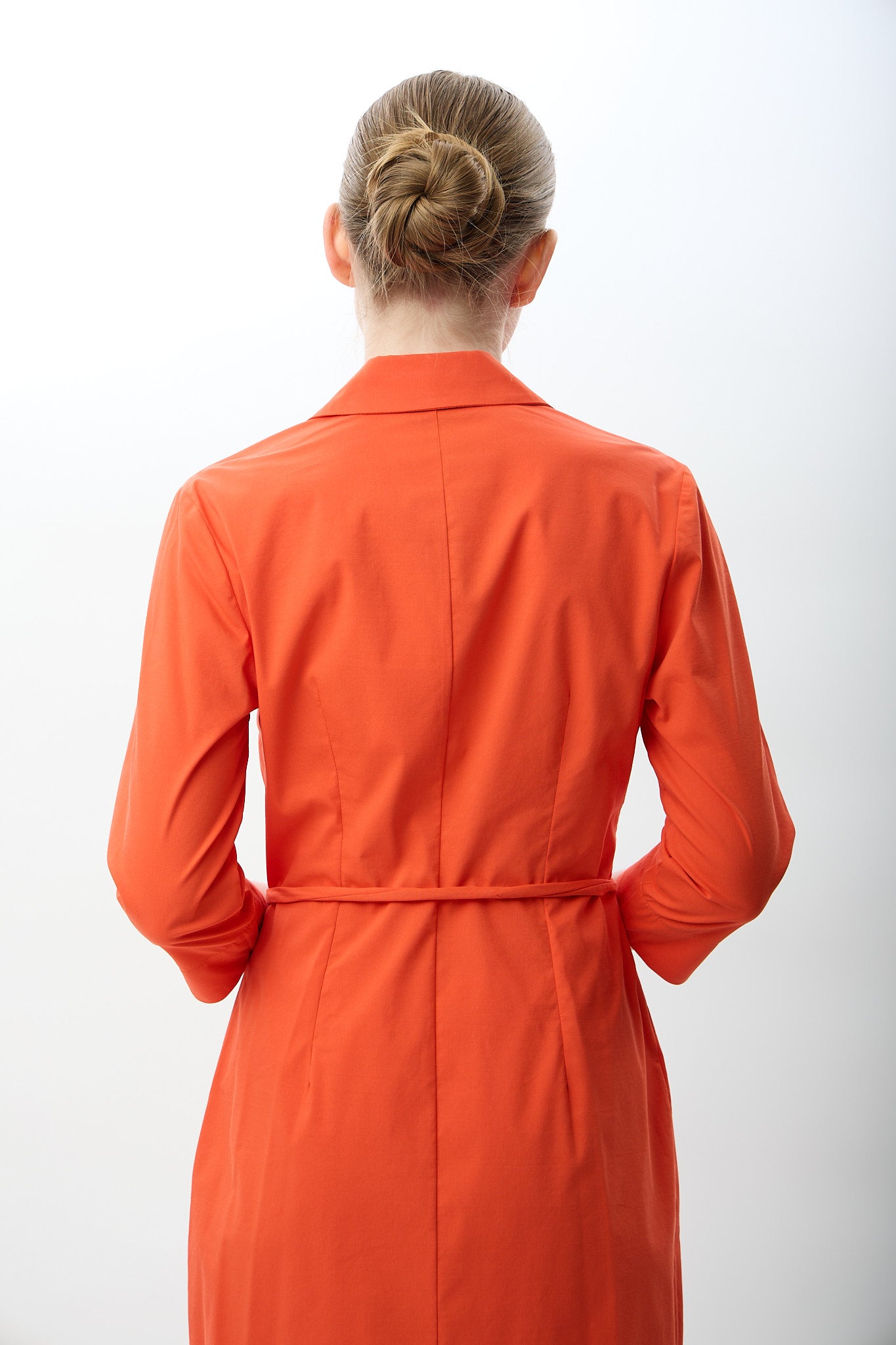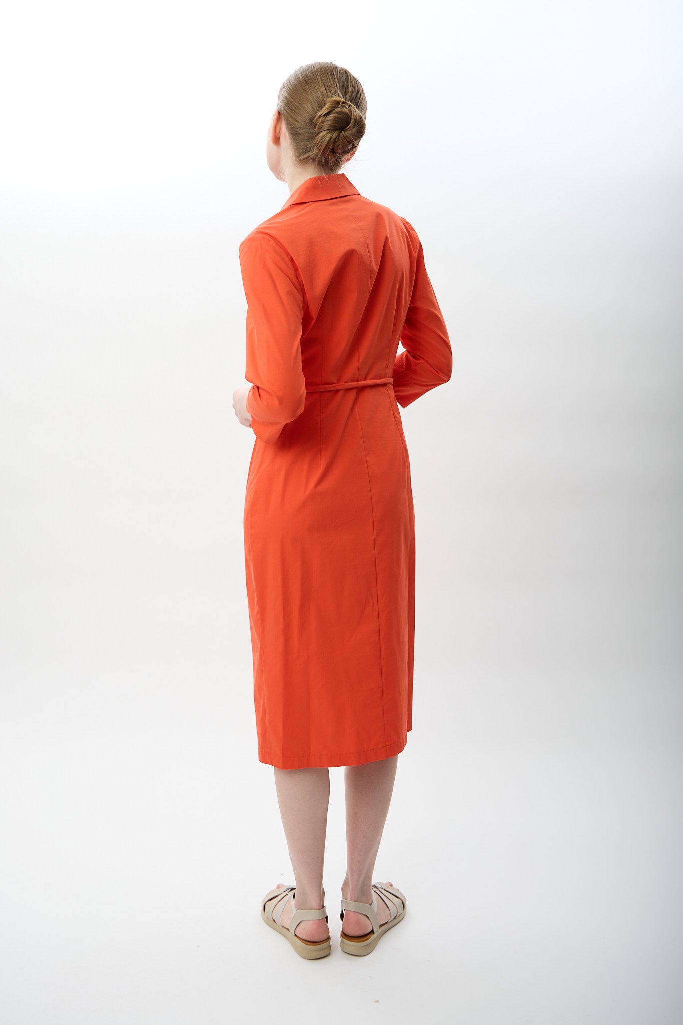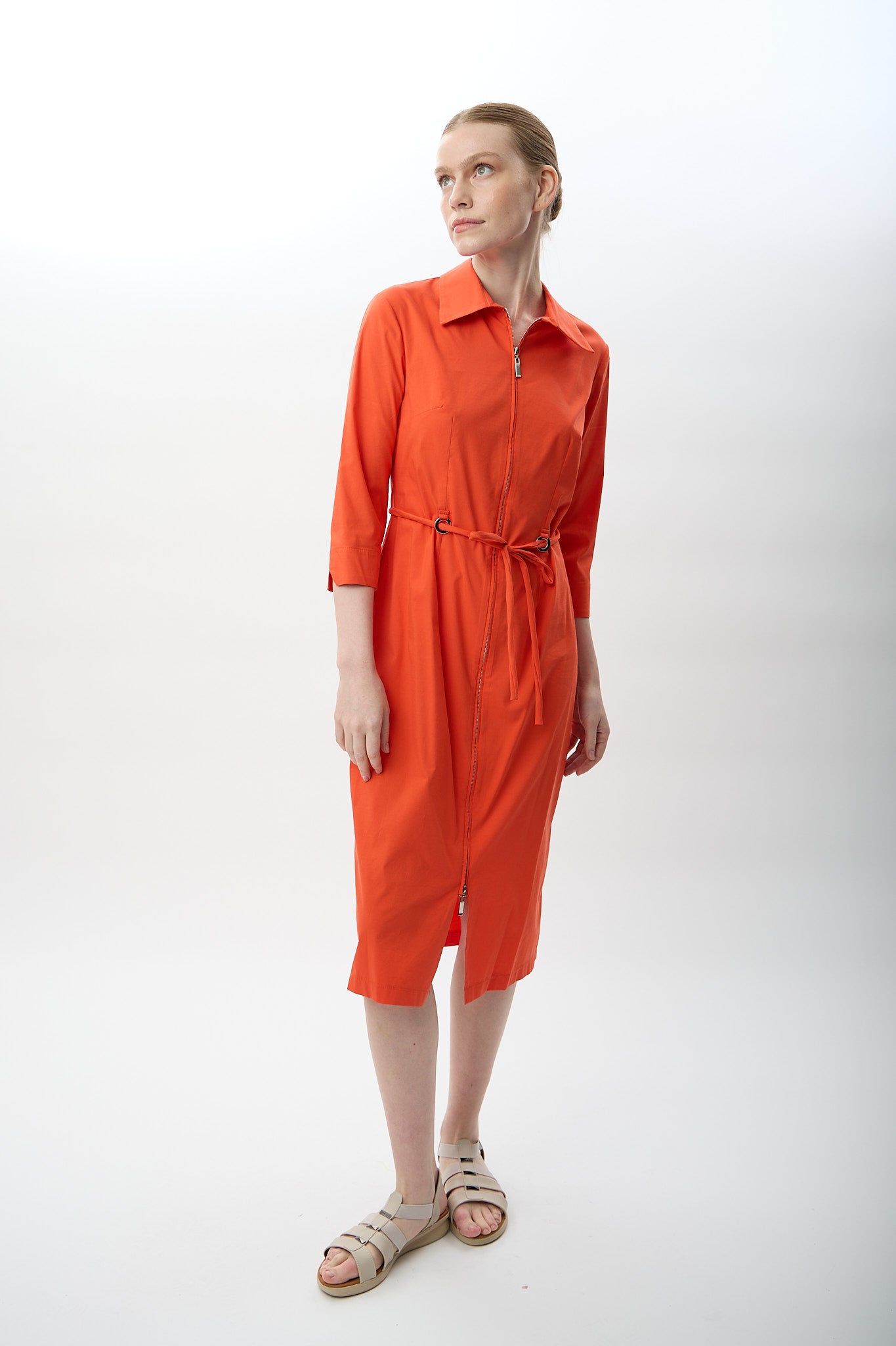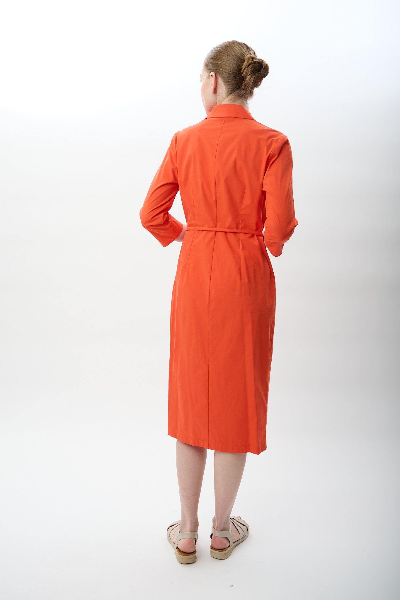Fermuarlı Gömlek Yaka Elbise (Mercan)