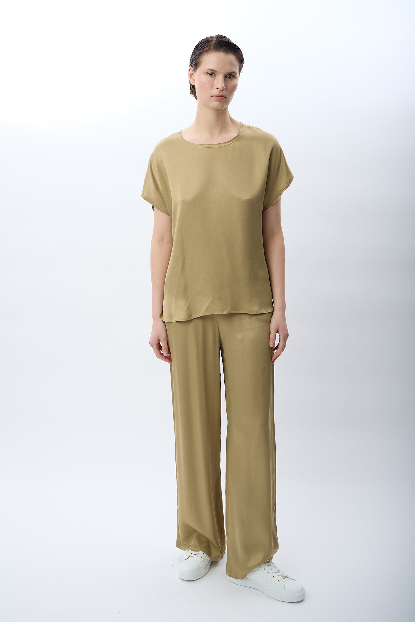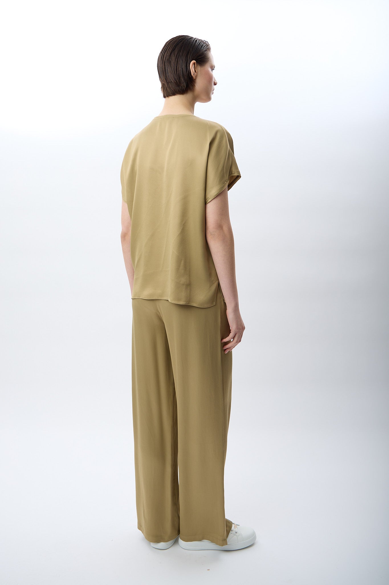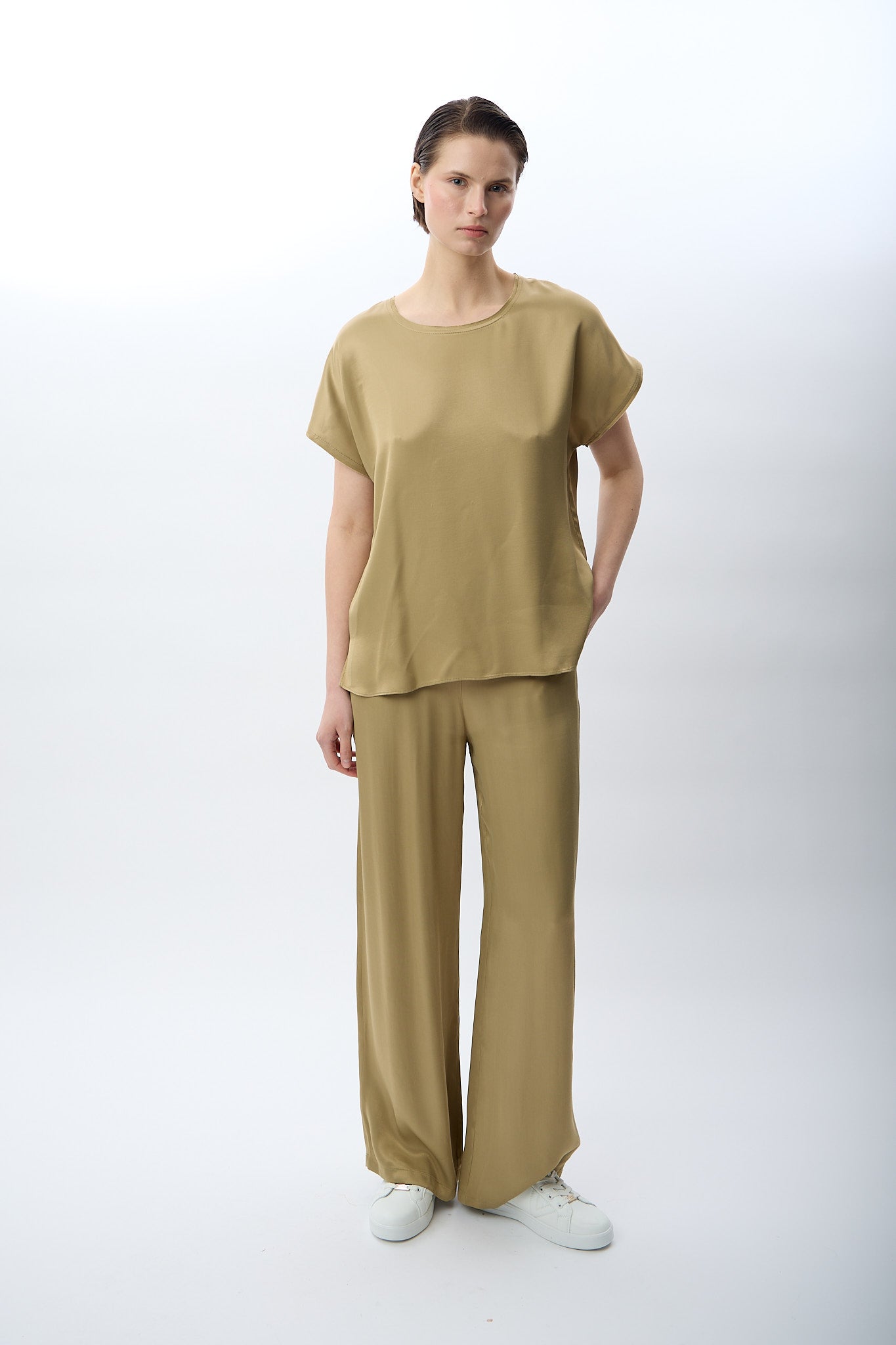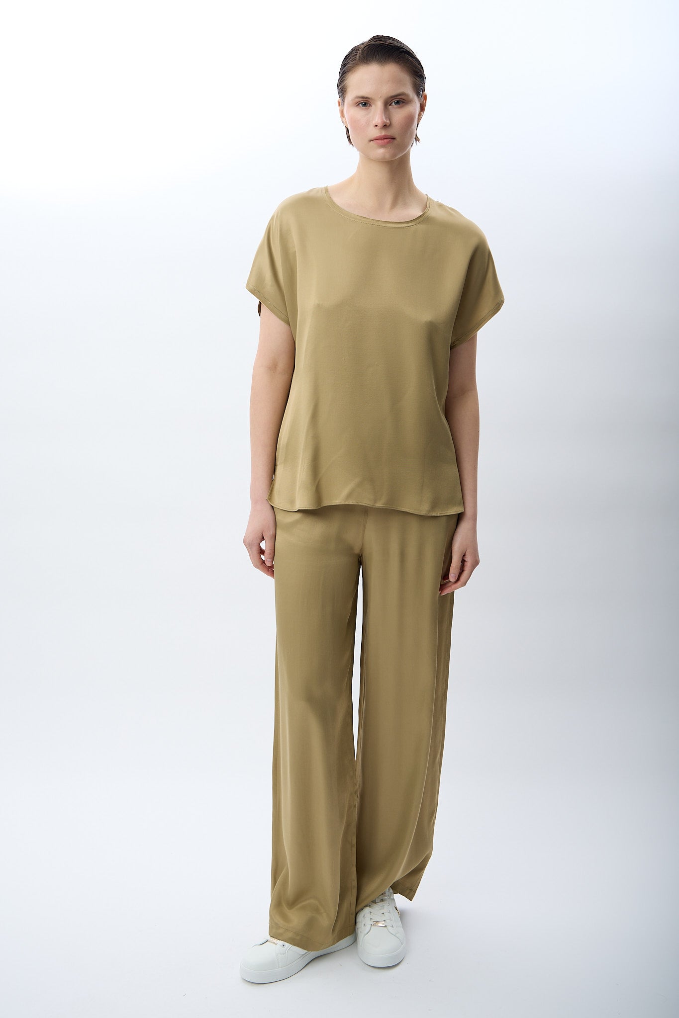 Bağcıklı Rahat Kesim Saten Pantolon (Haki)