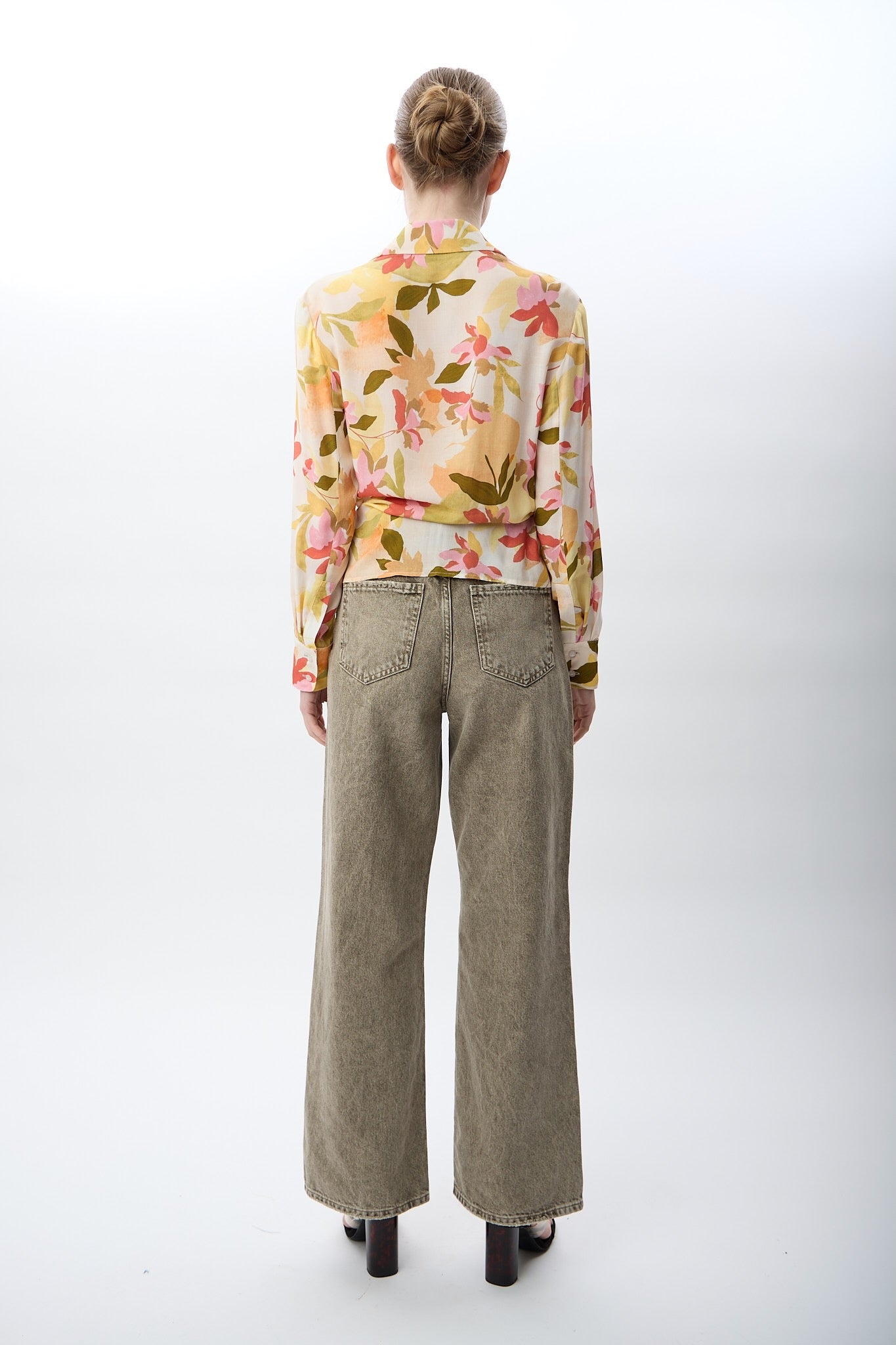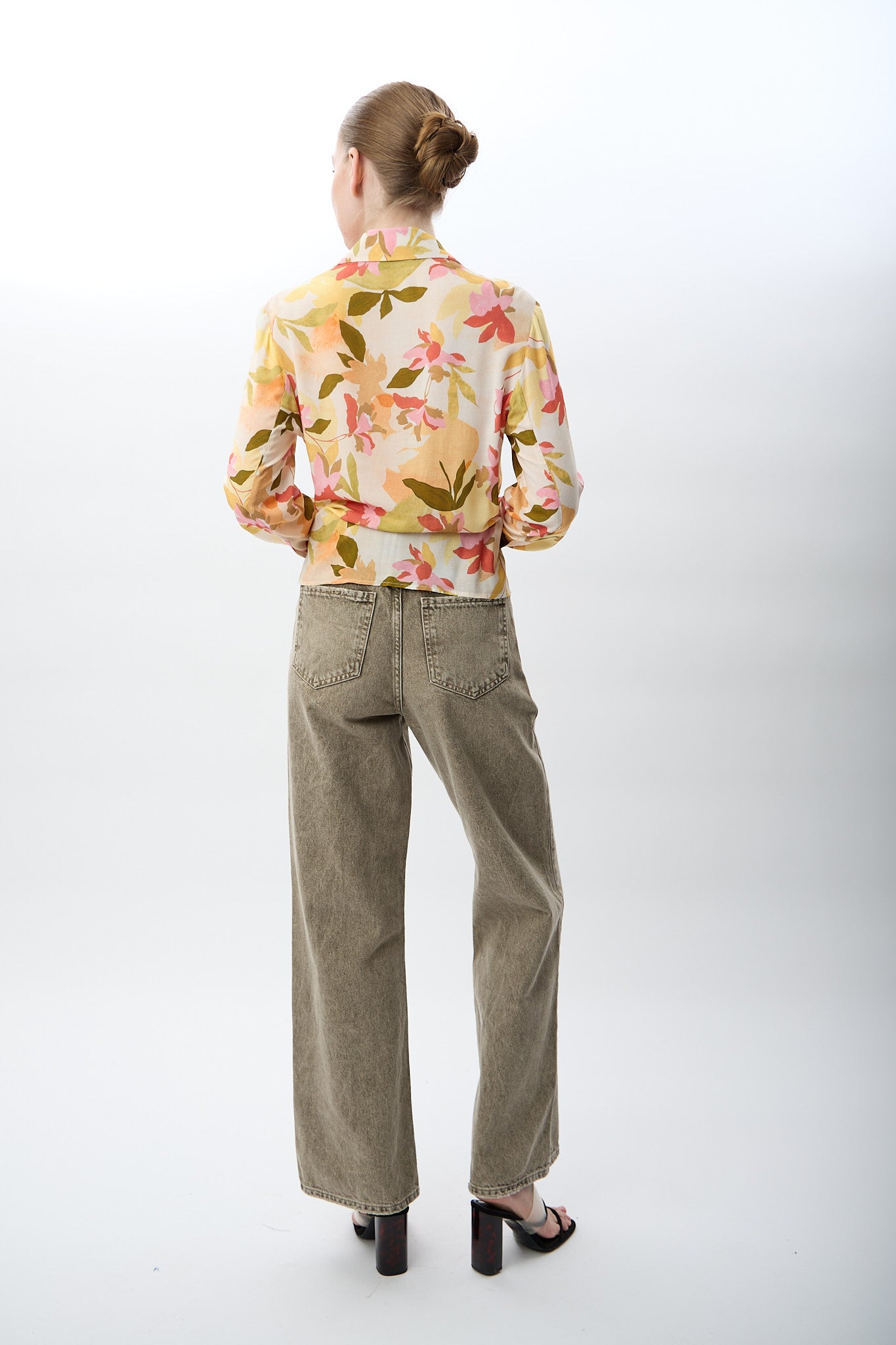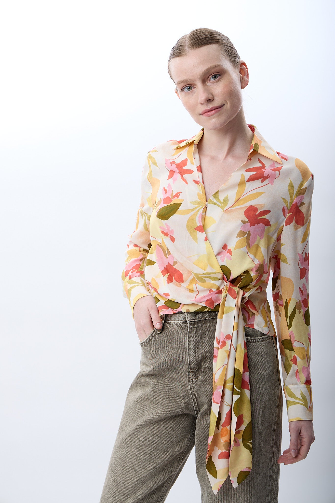 Kruvaze Yaka Çiçekli Bluz (Desenli)