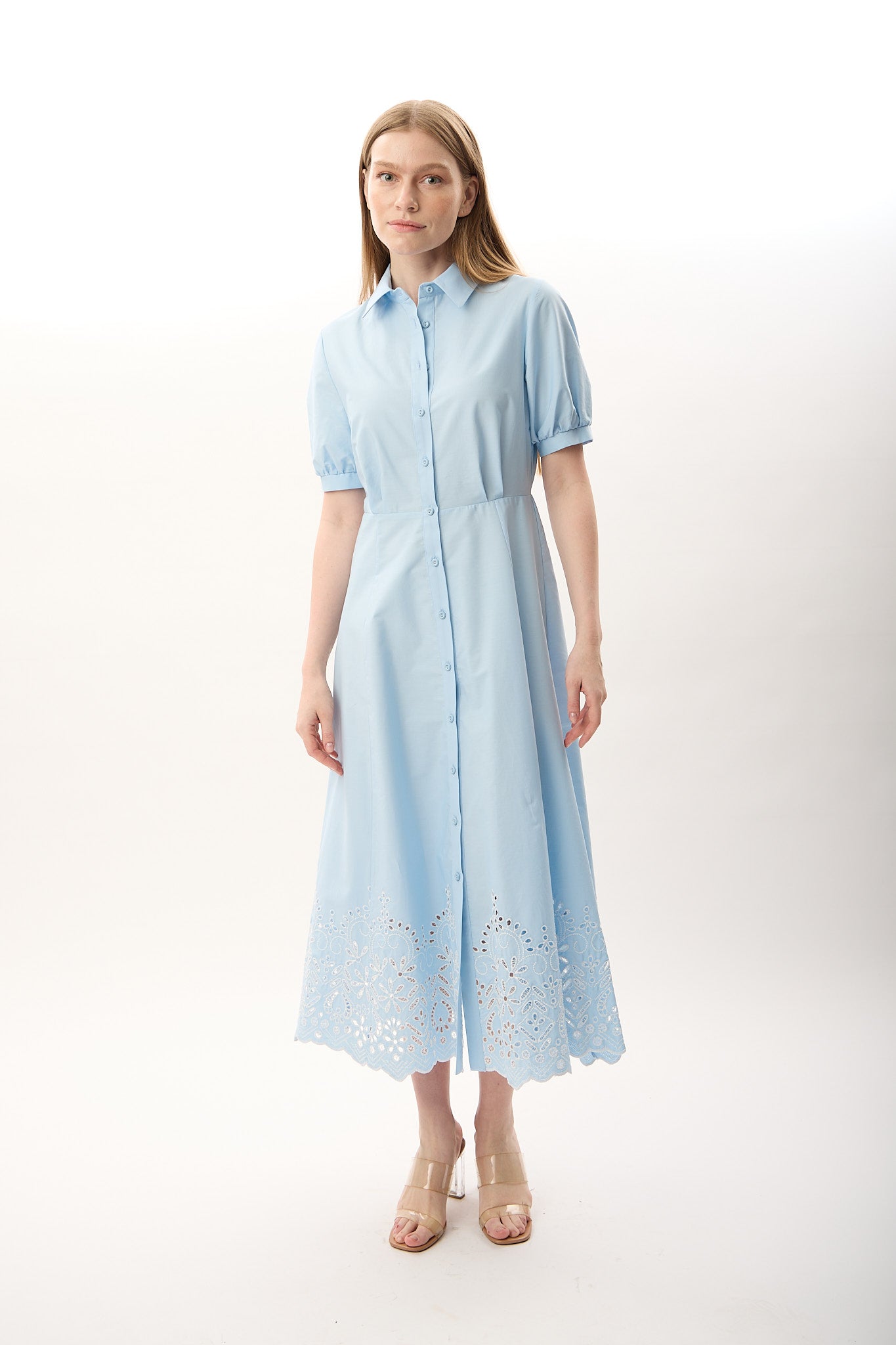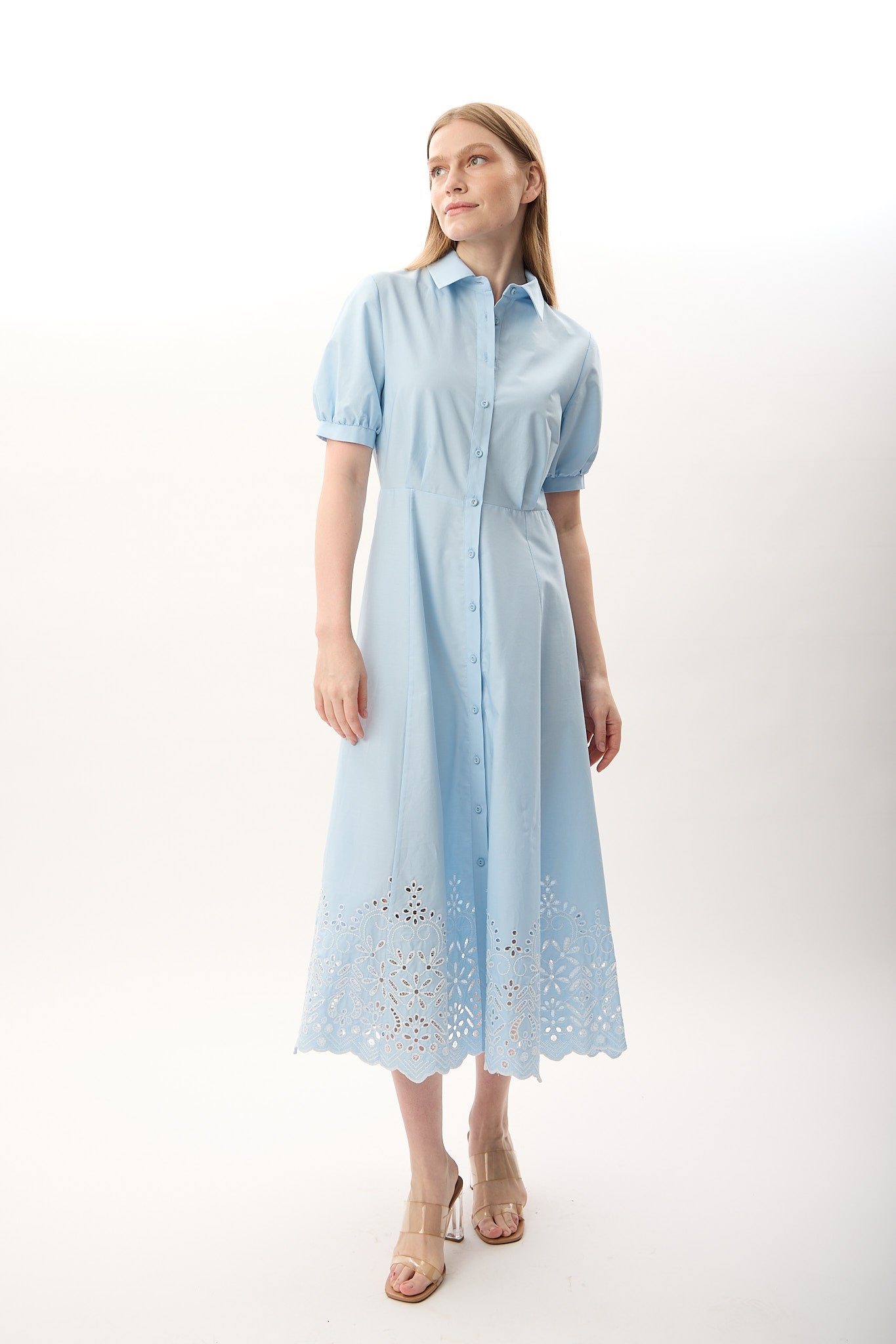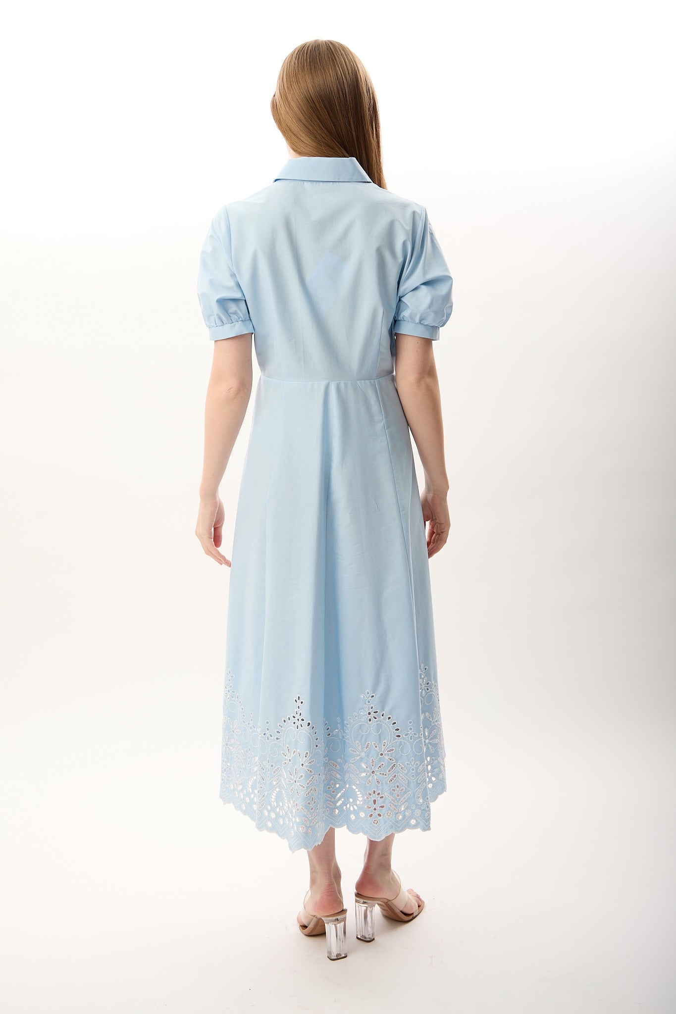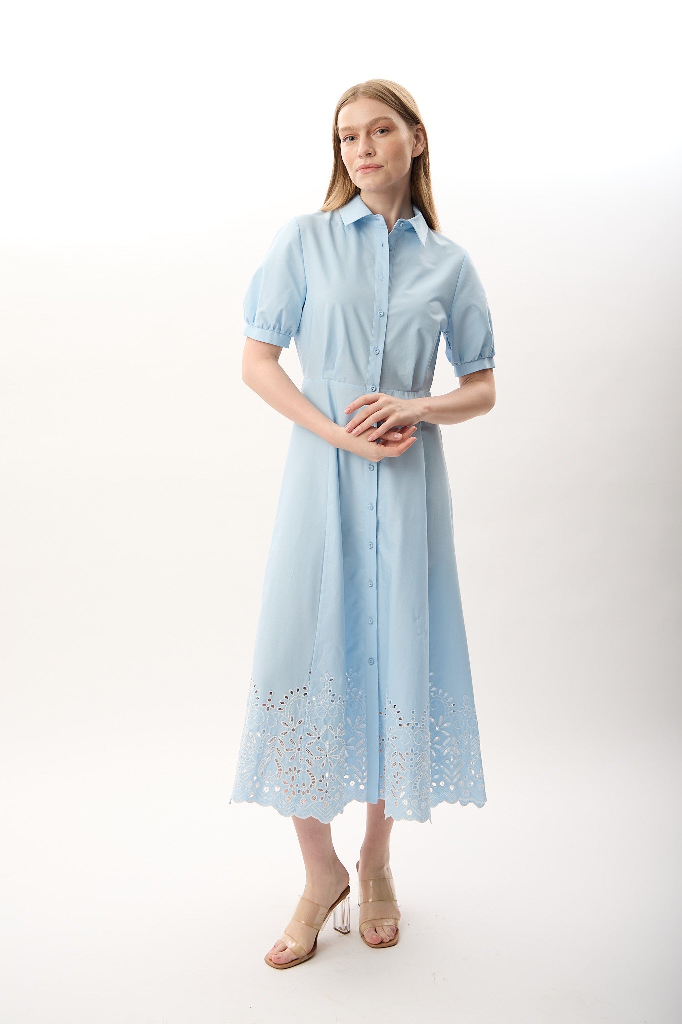 Nakış Detaylı Gömlek Elbise (Mavi)