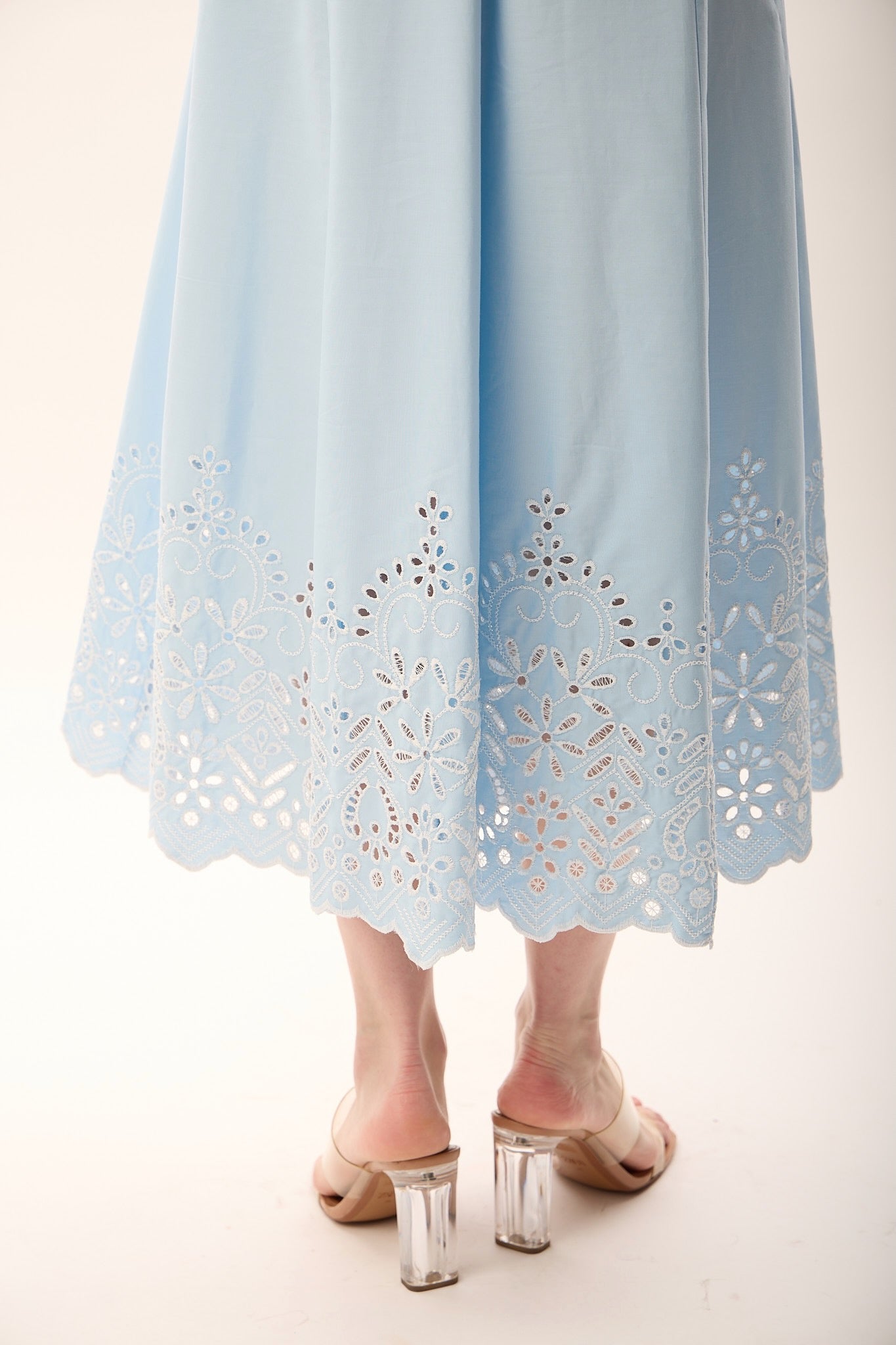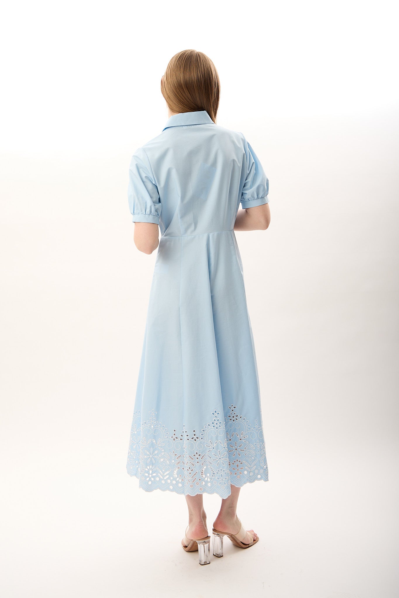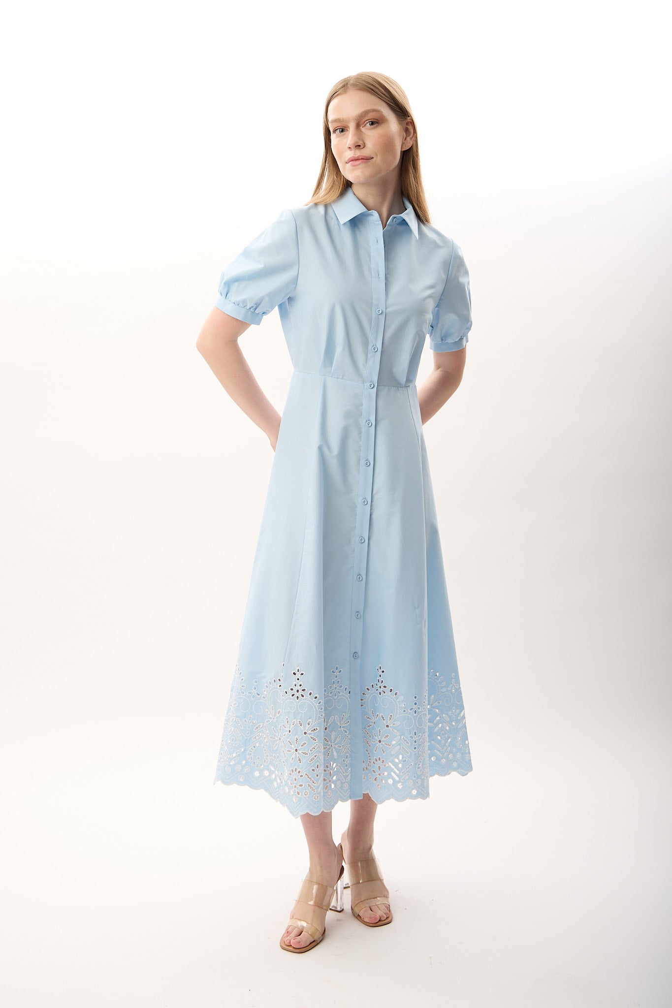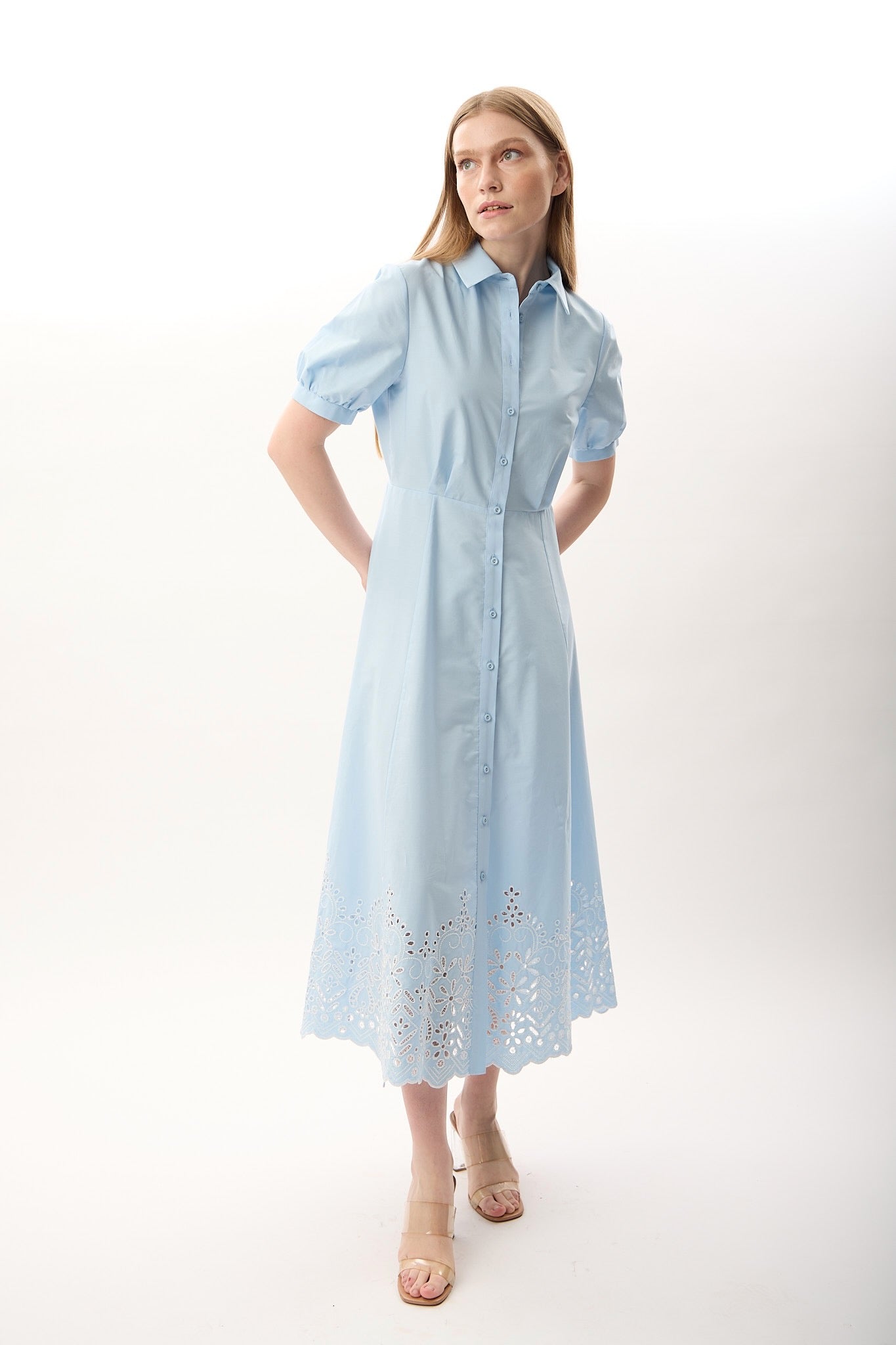 Nakış Detaylı Gömlek Elbise (Mavi)
