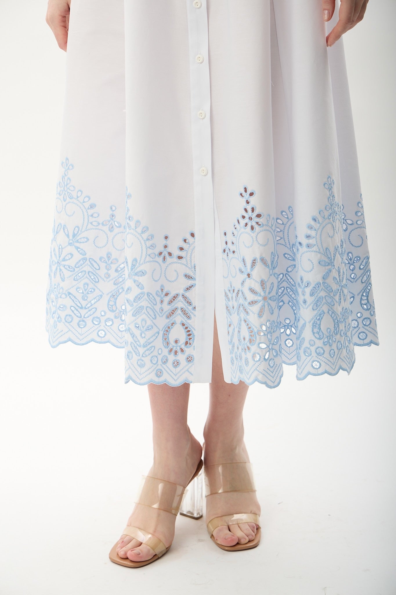 Nakış Detaylı Gömlek Elbise (Beyaz)