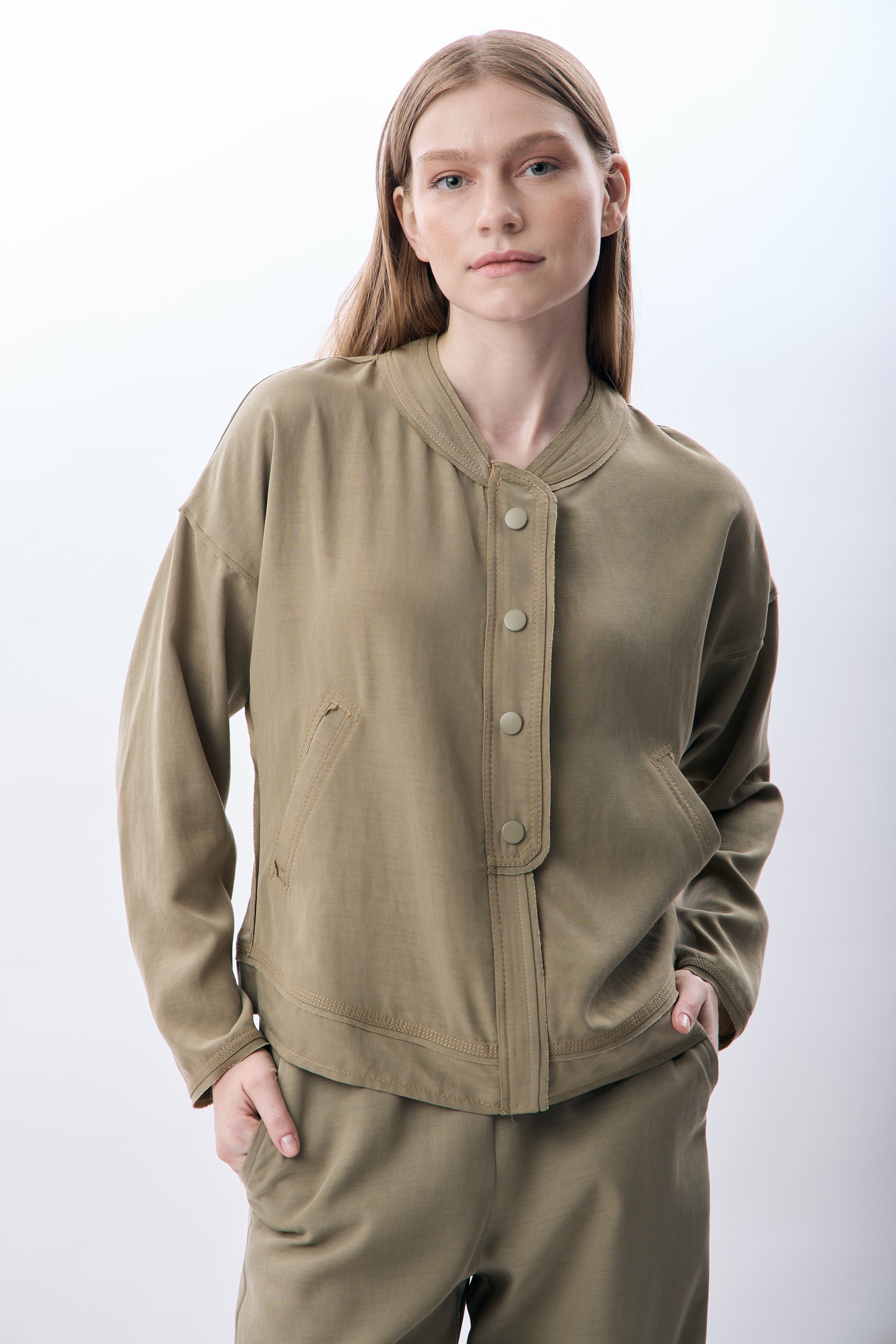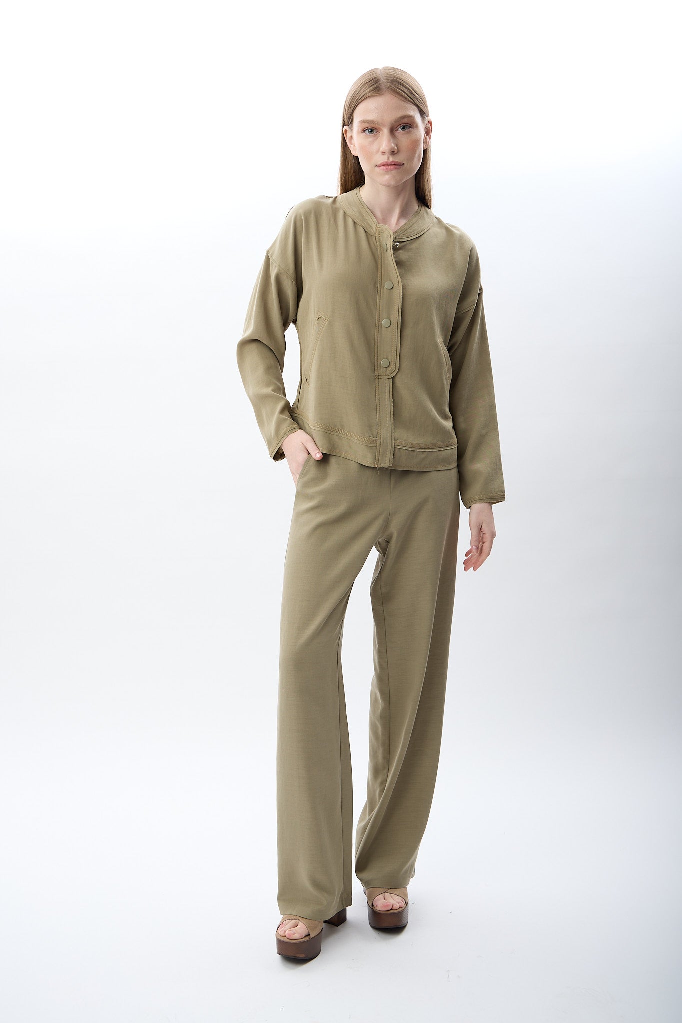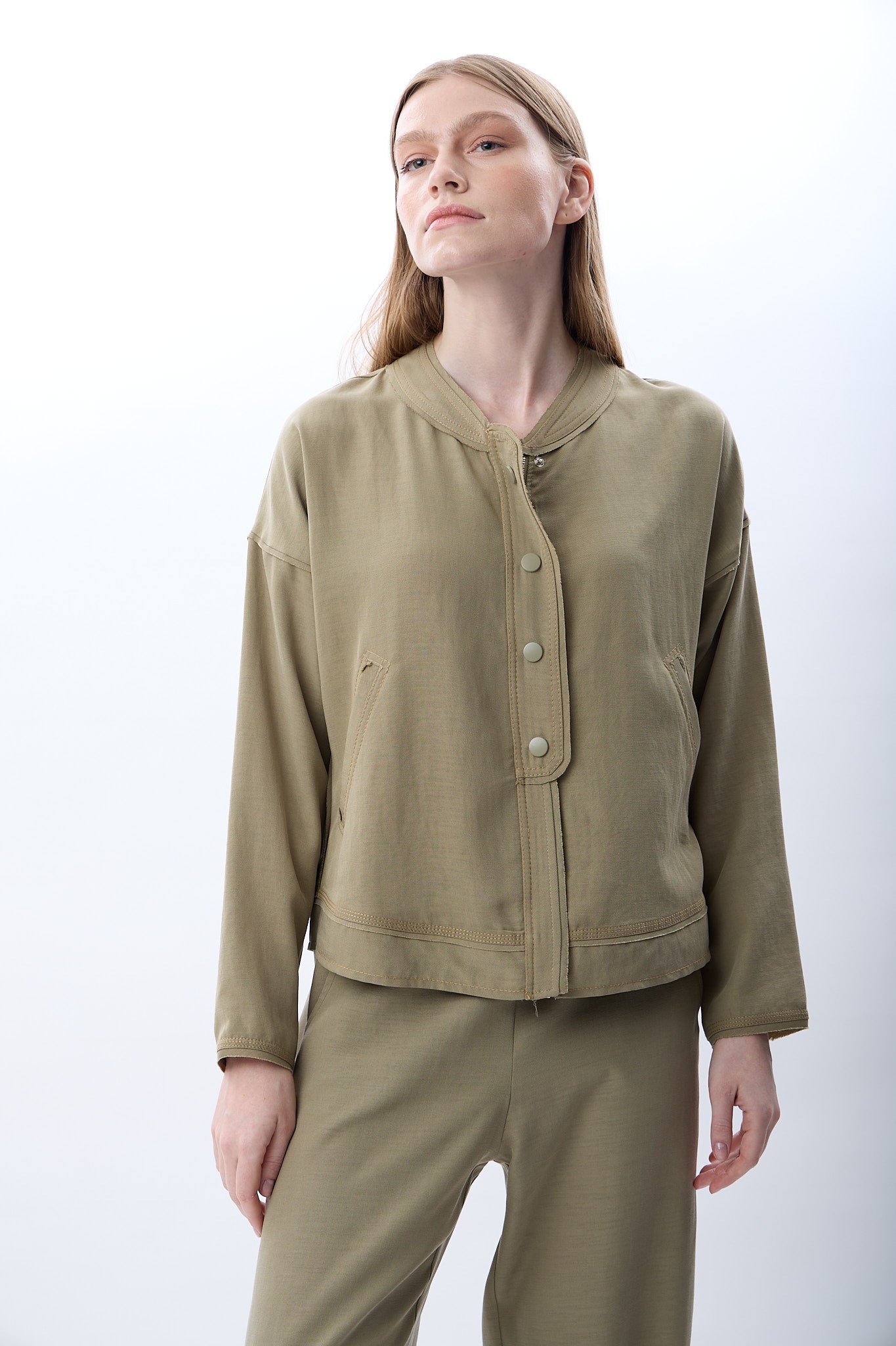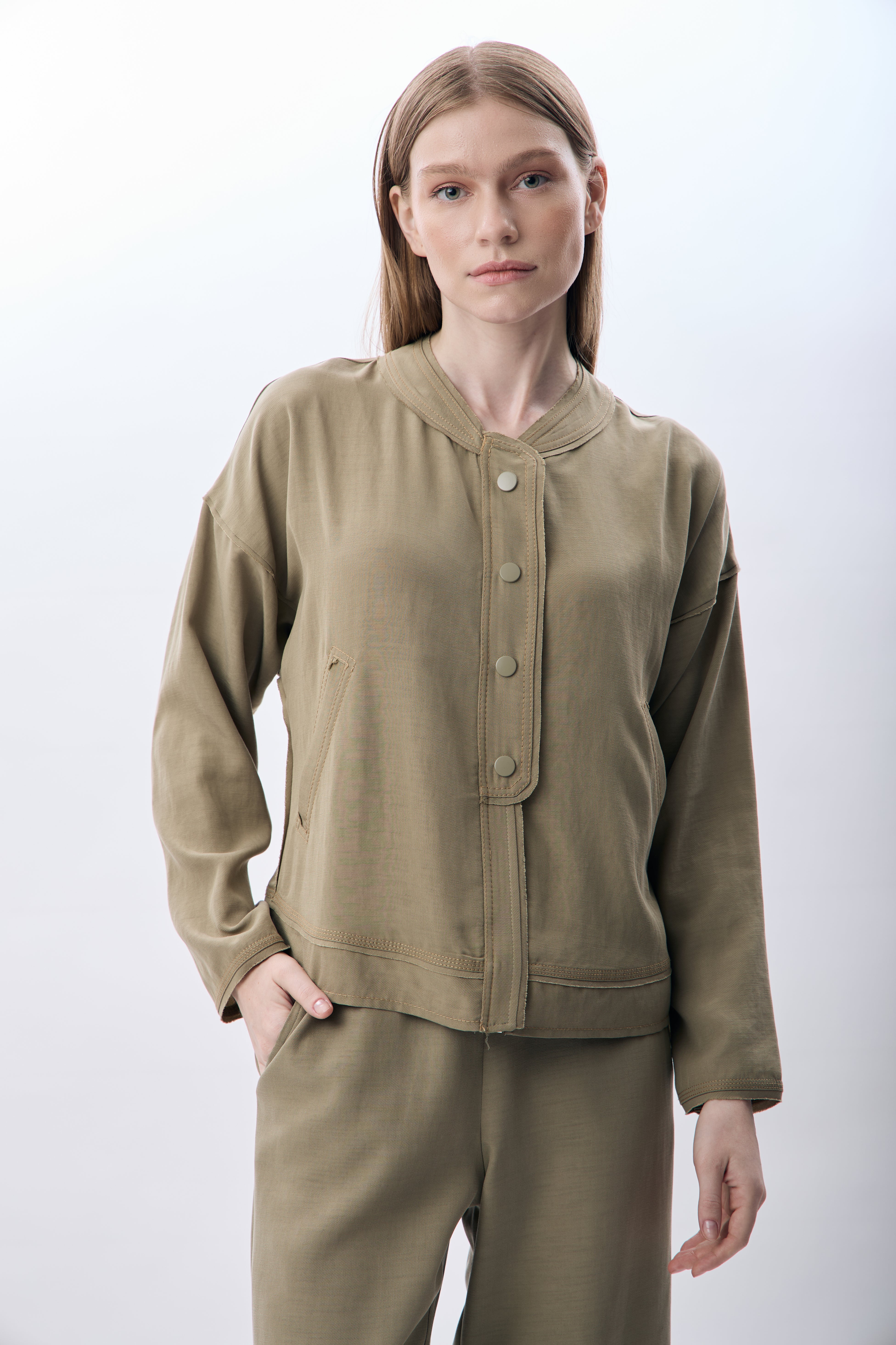 Hakim Yaka Düğmeli Kısa Ceket - Haki