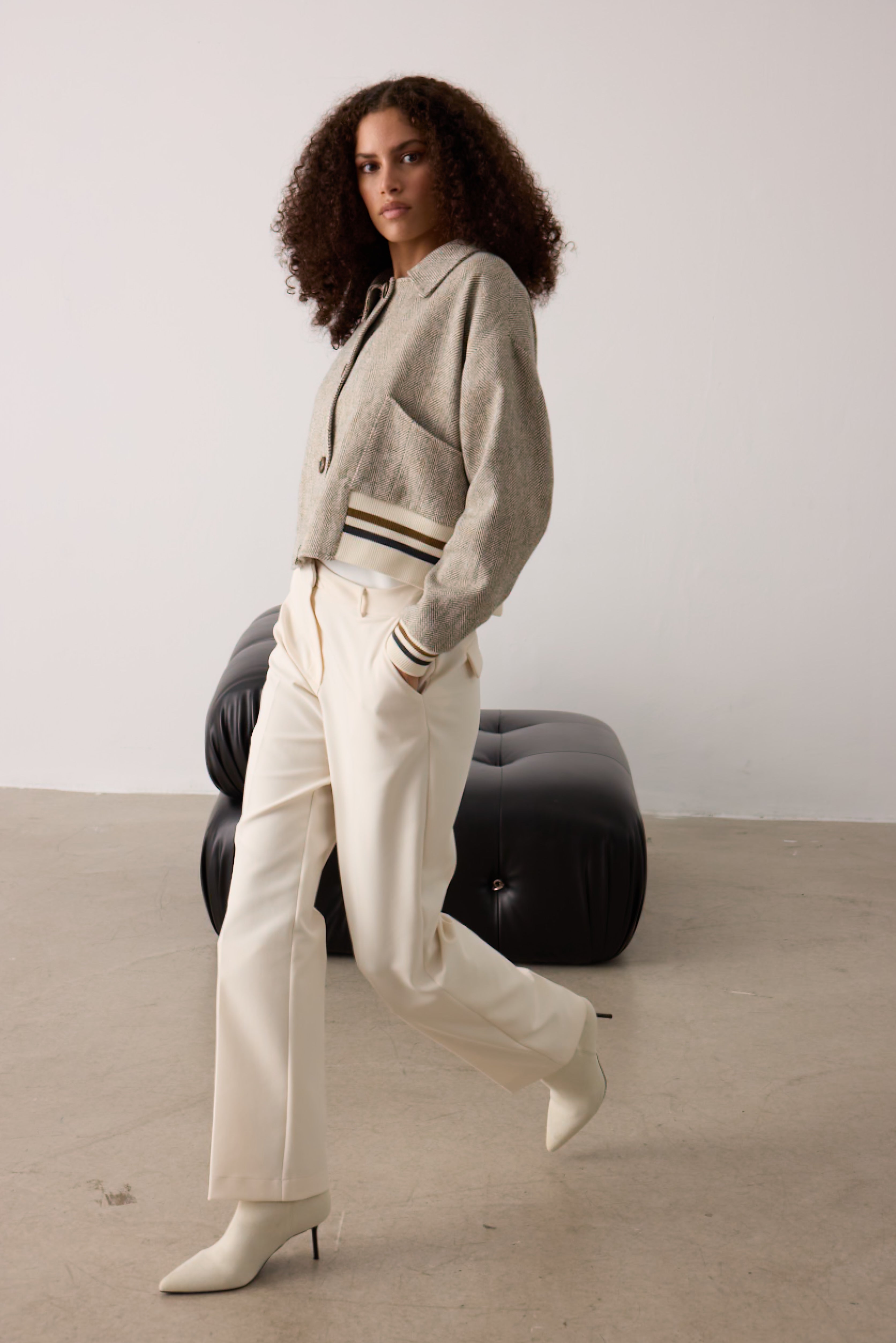 - Alt kısımda bomber tarzı çizgili ribana kemer detayı