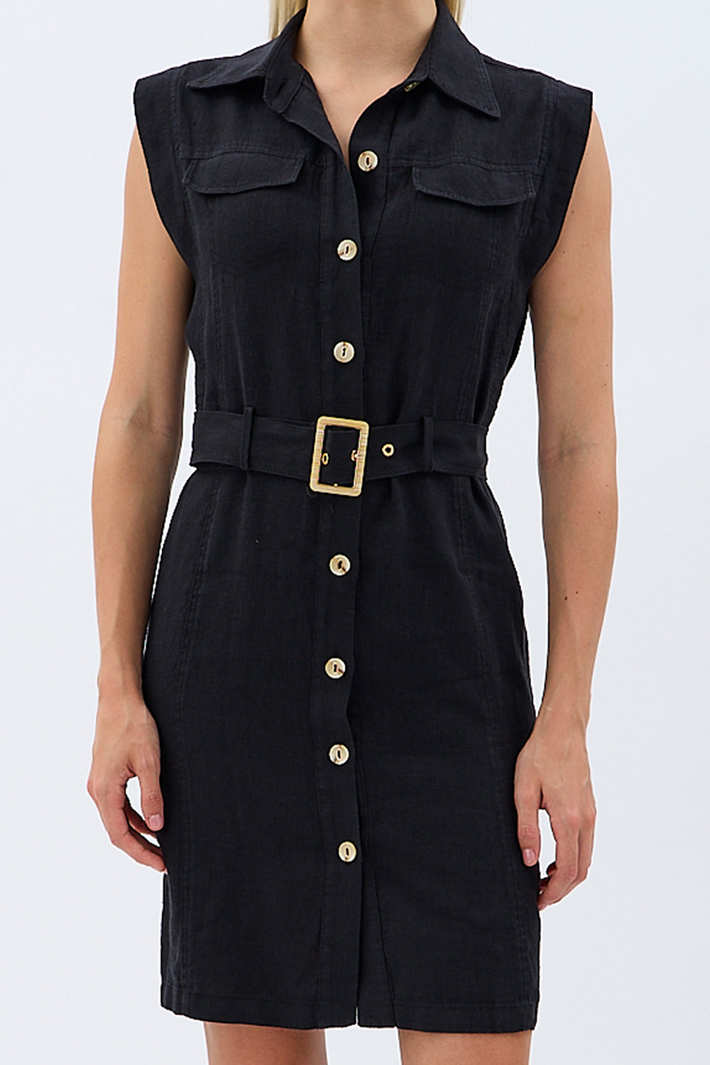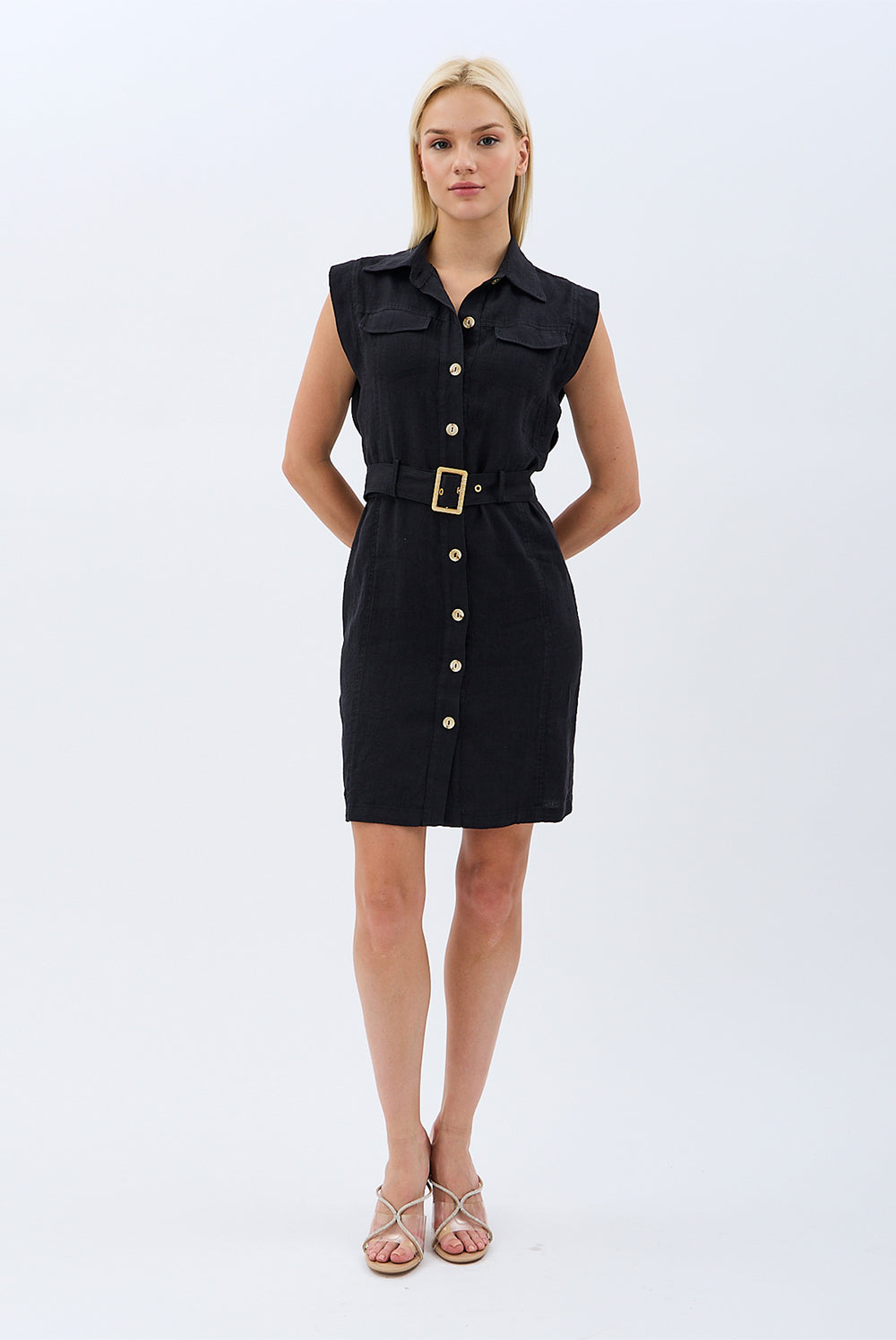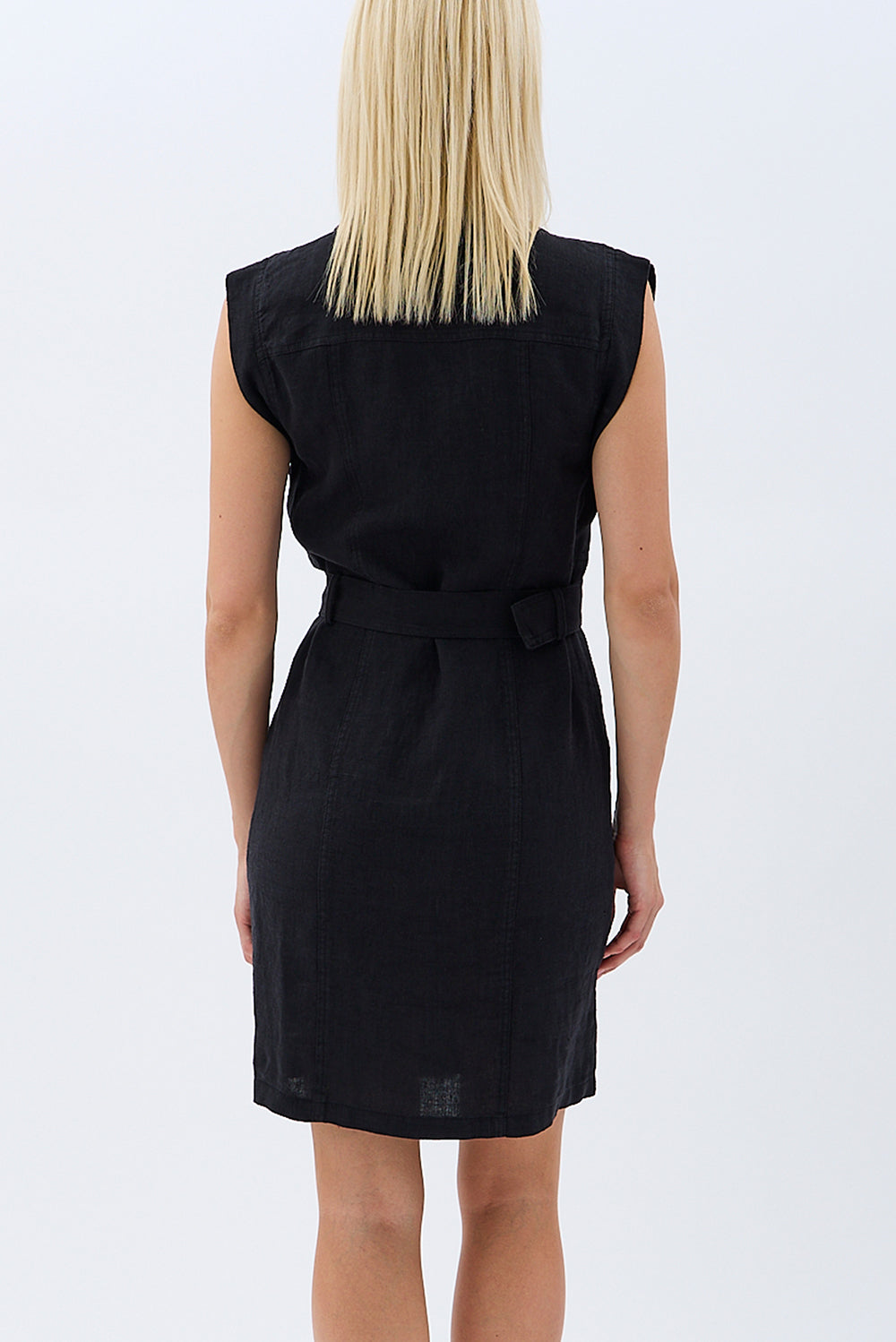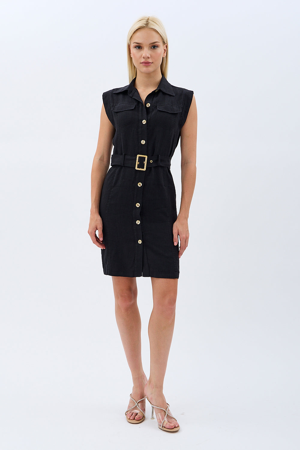 Kemerli Keten Elbise (Siyah)