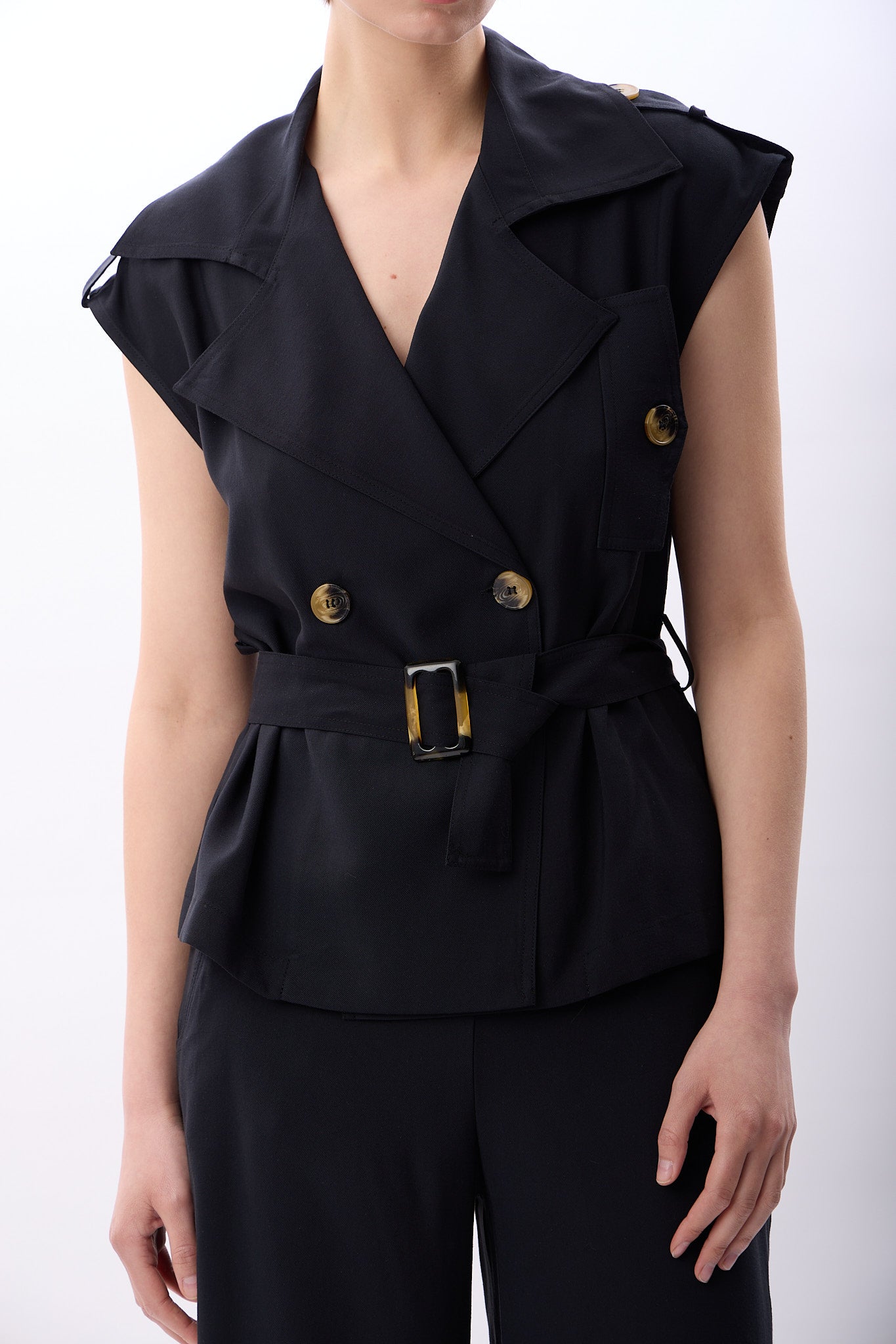 Kemerli Kruvaze Yelek (Siyah)