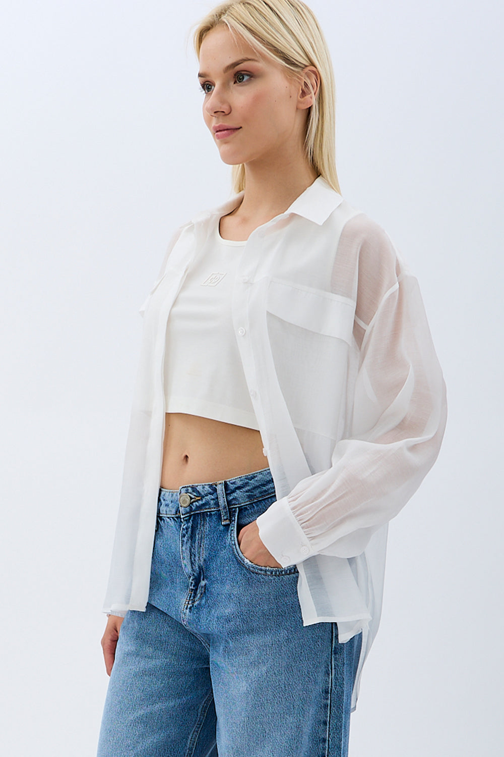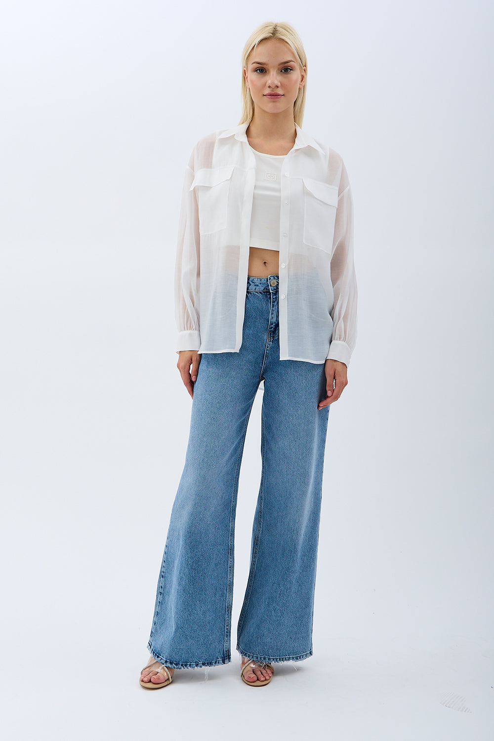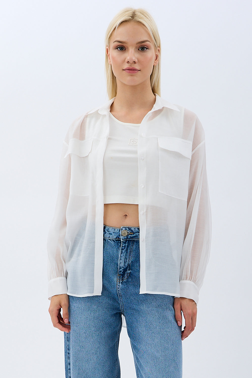 Arkadan Bağlamalı Gömlek (Ekru)