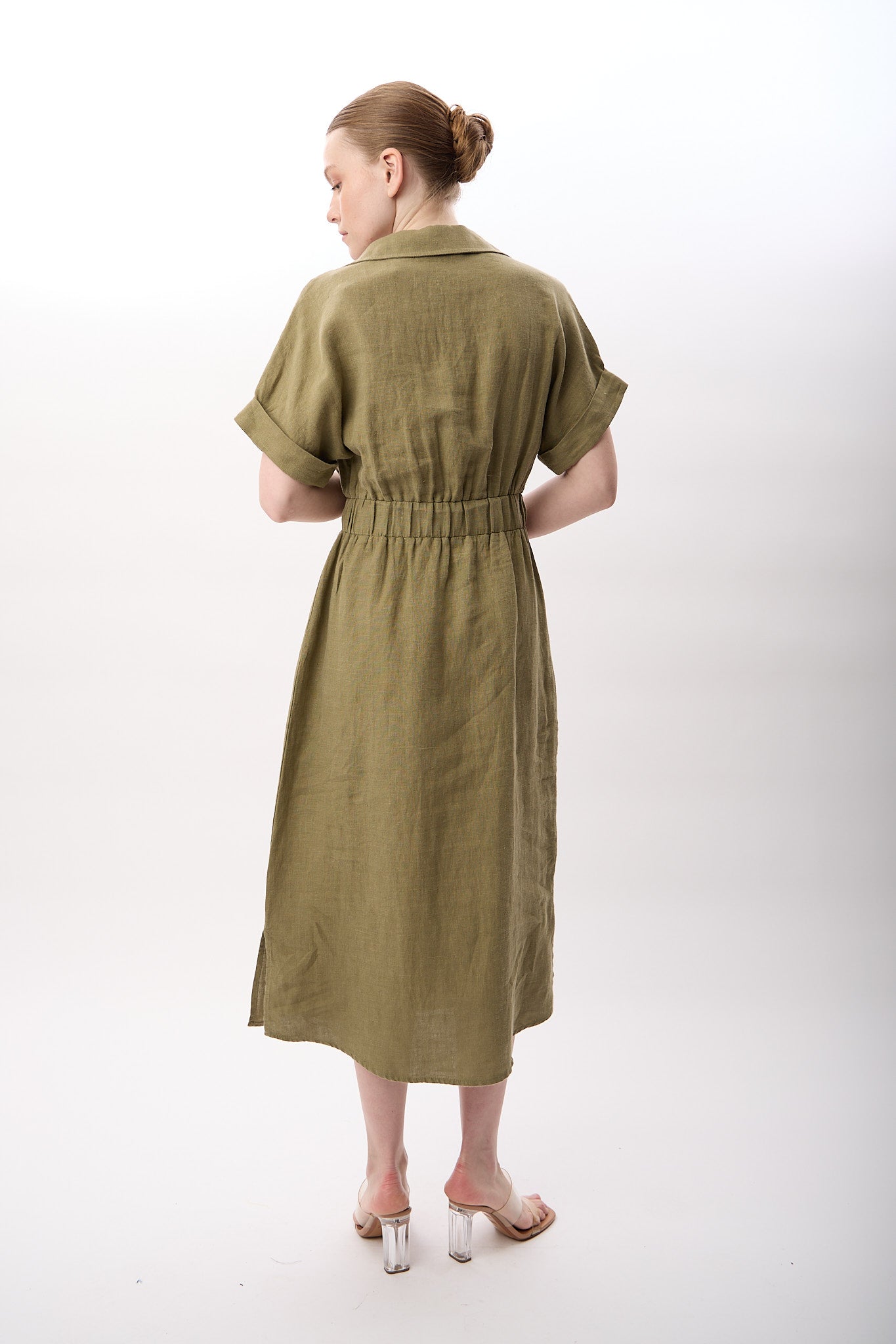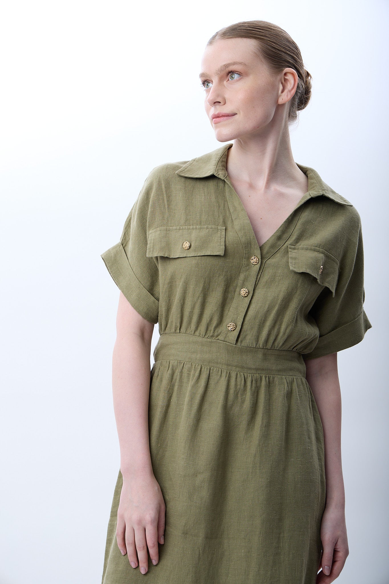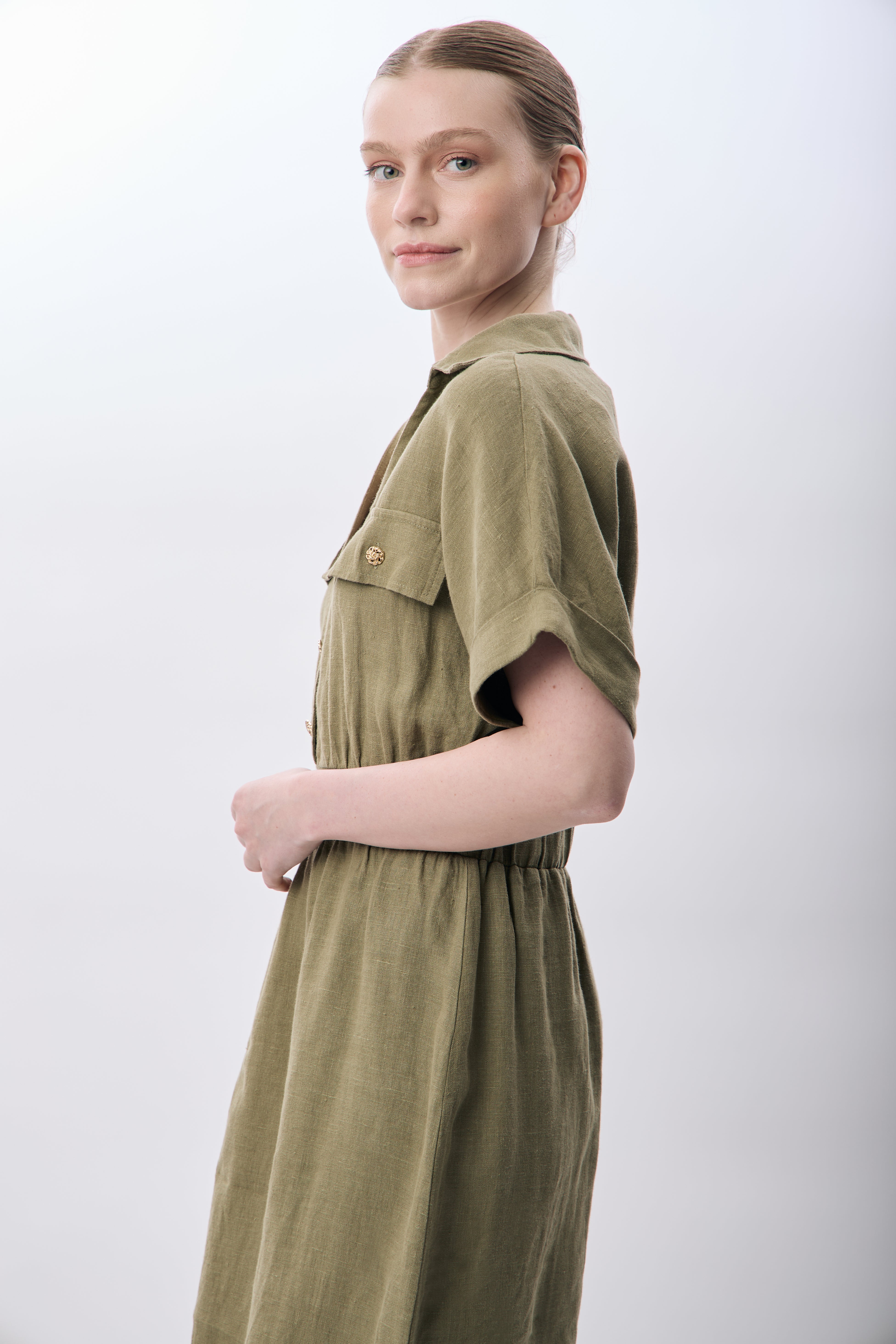 Gömlek Yaka Cepli Elbise (Haki)
