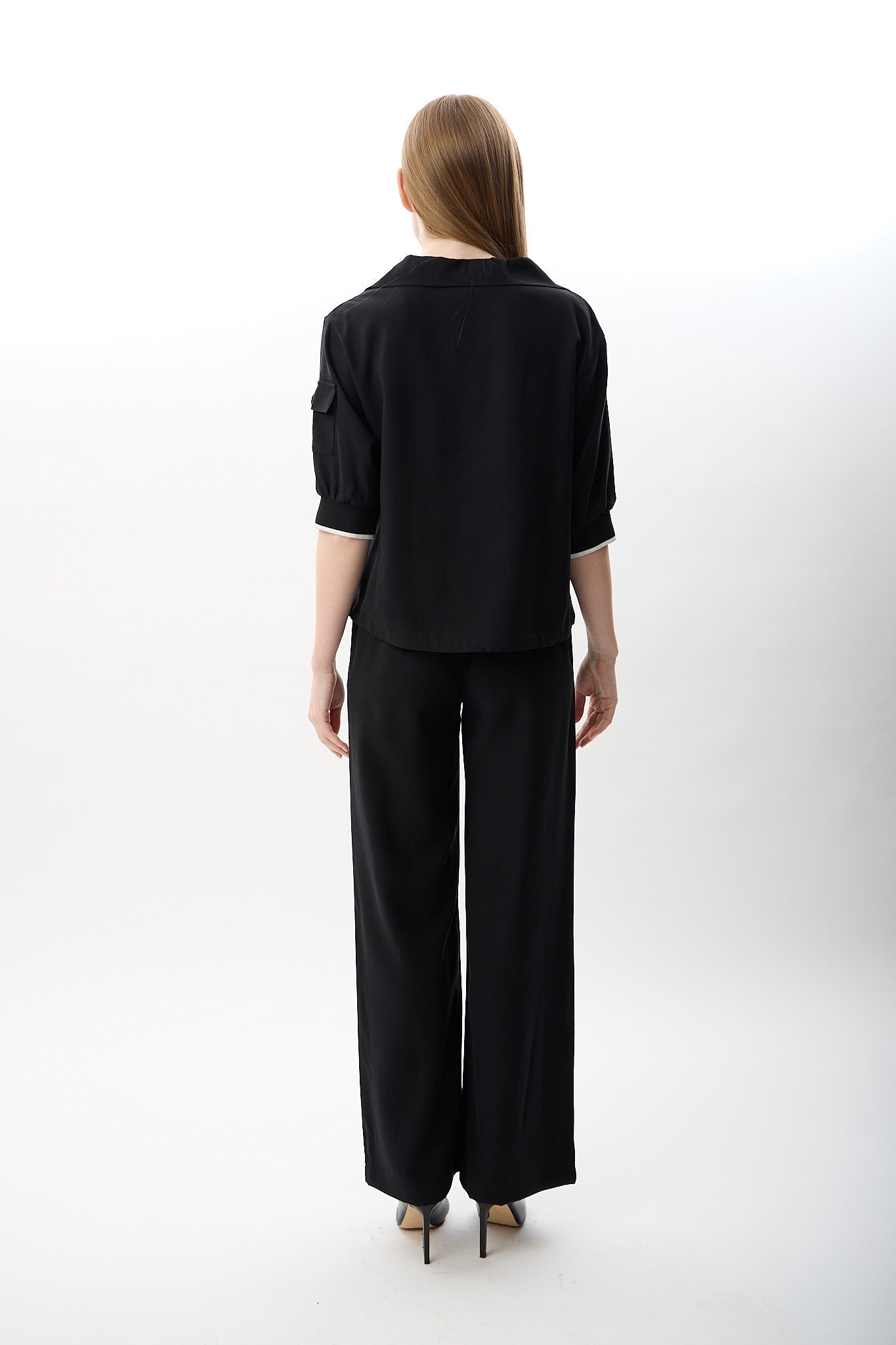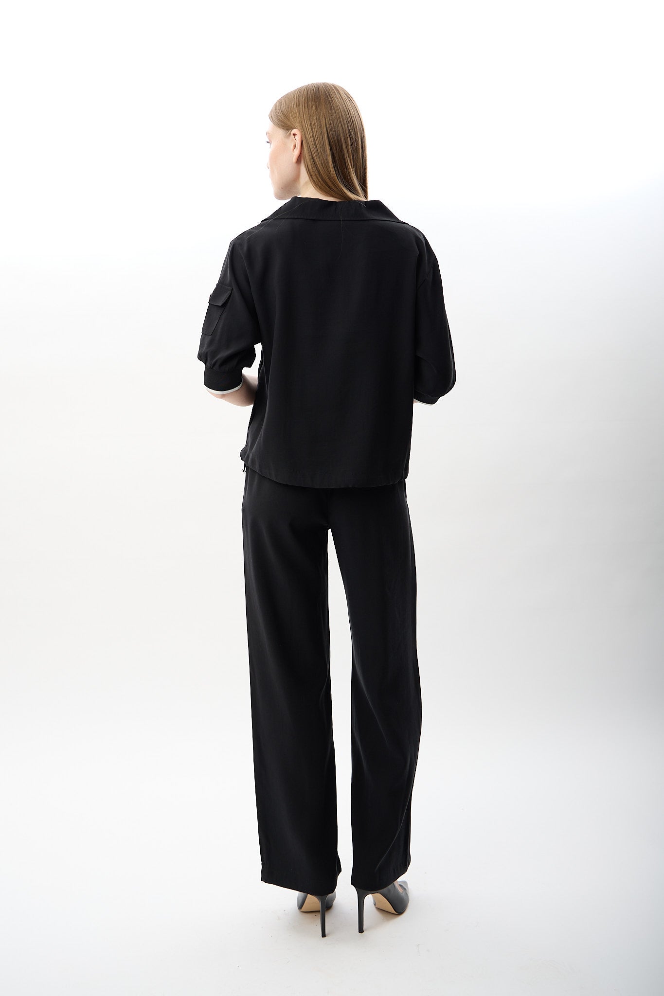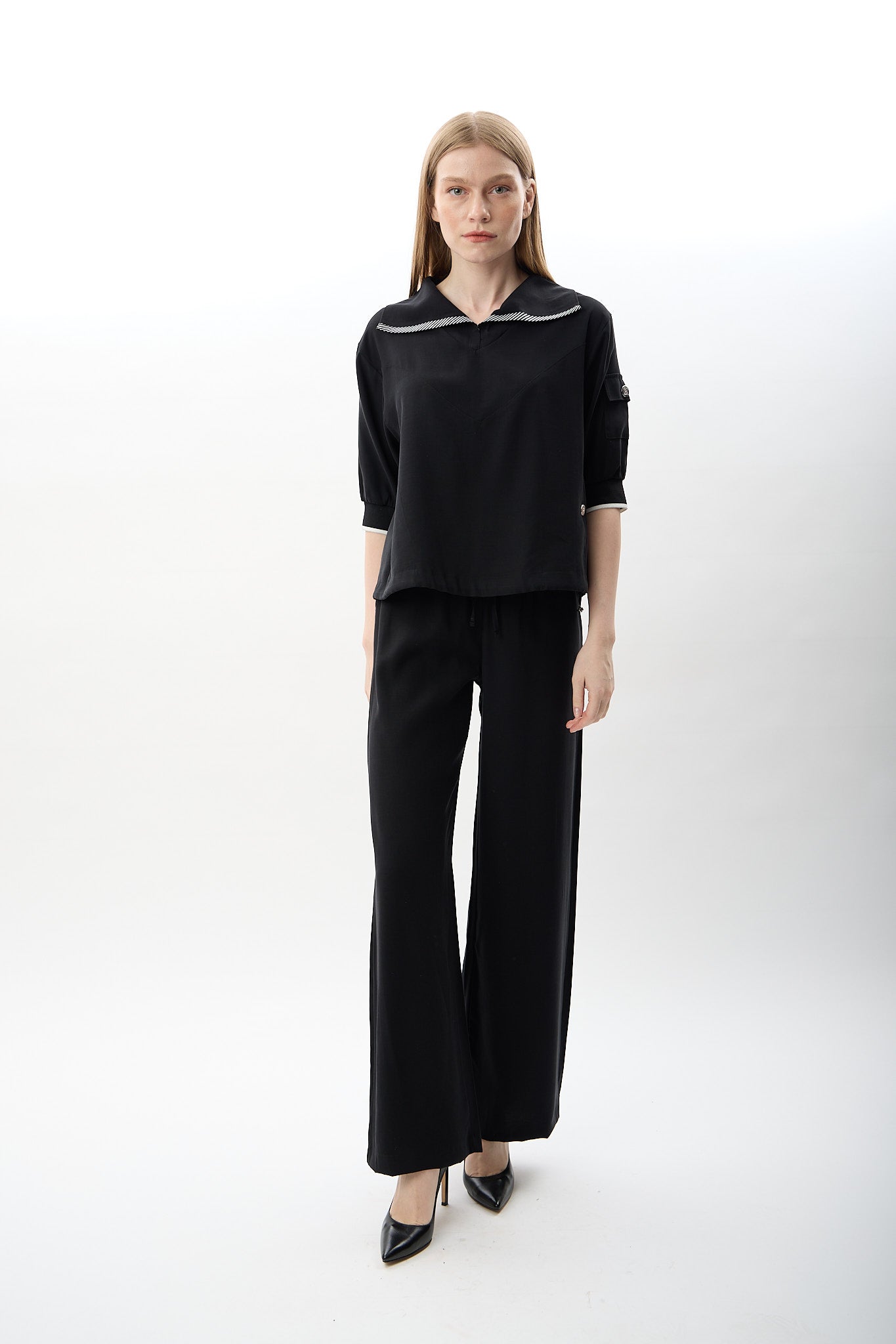 Bağcıklı Düz Paça Pantolon (Siyah)