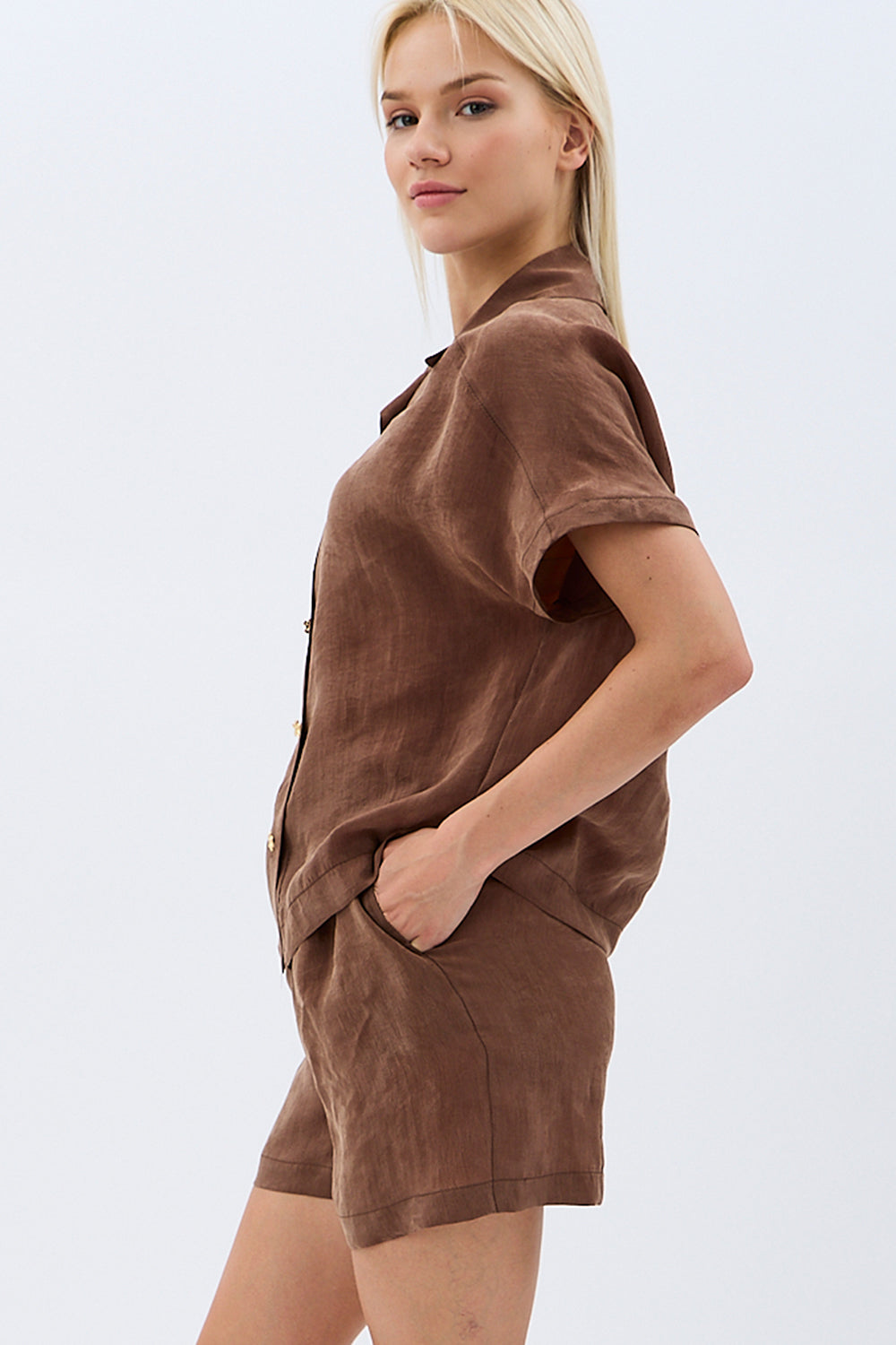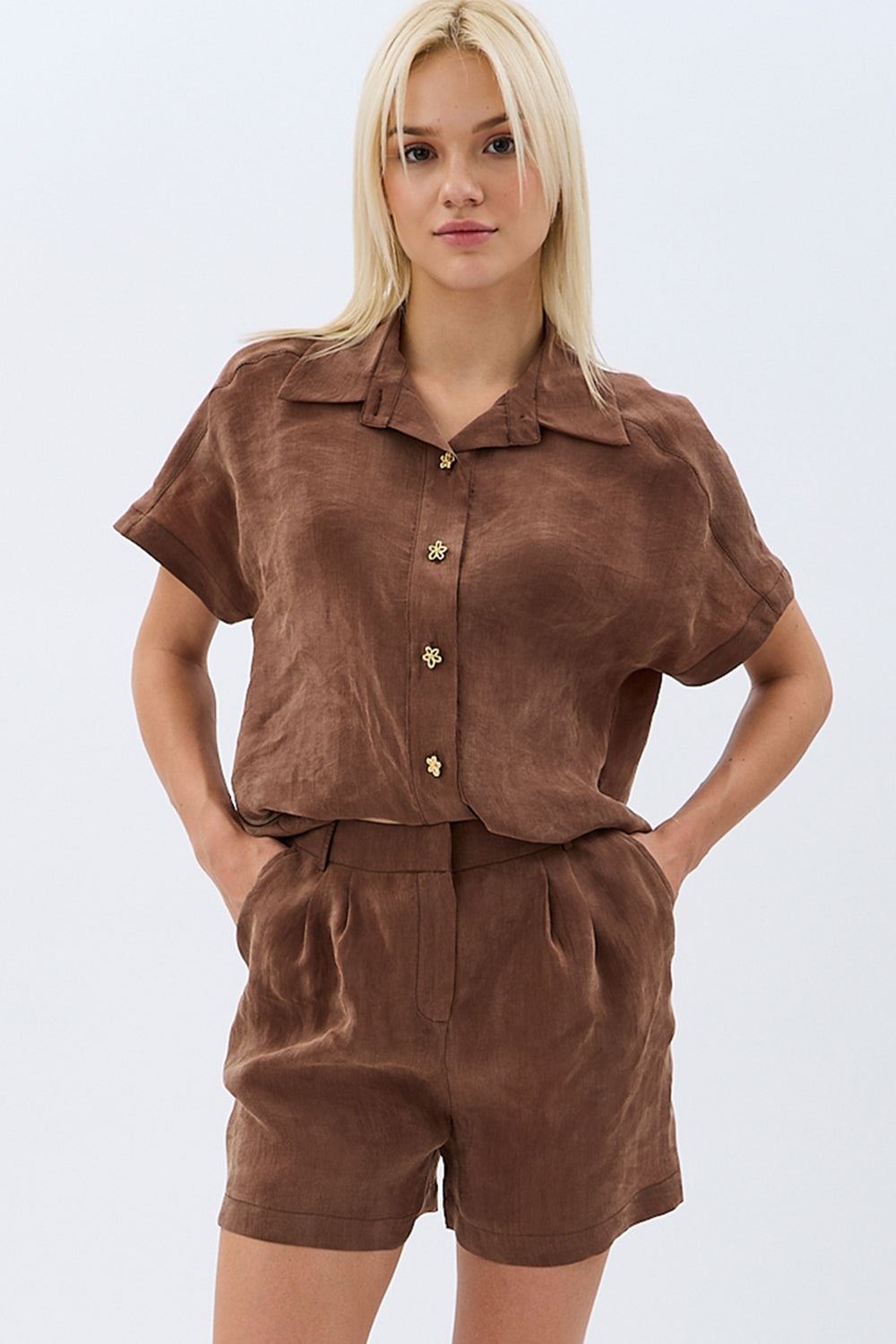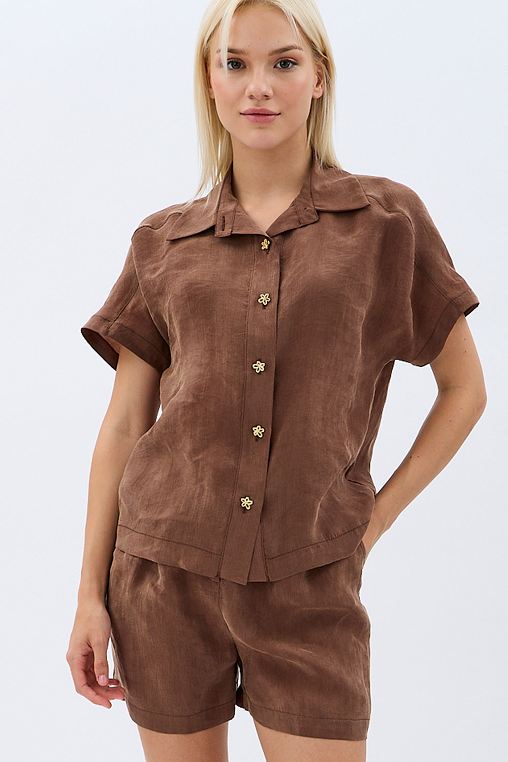 Tasarım Düğmeli Gömlek (Kahverengi)
