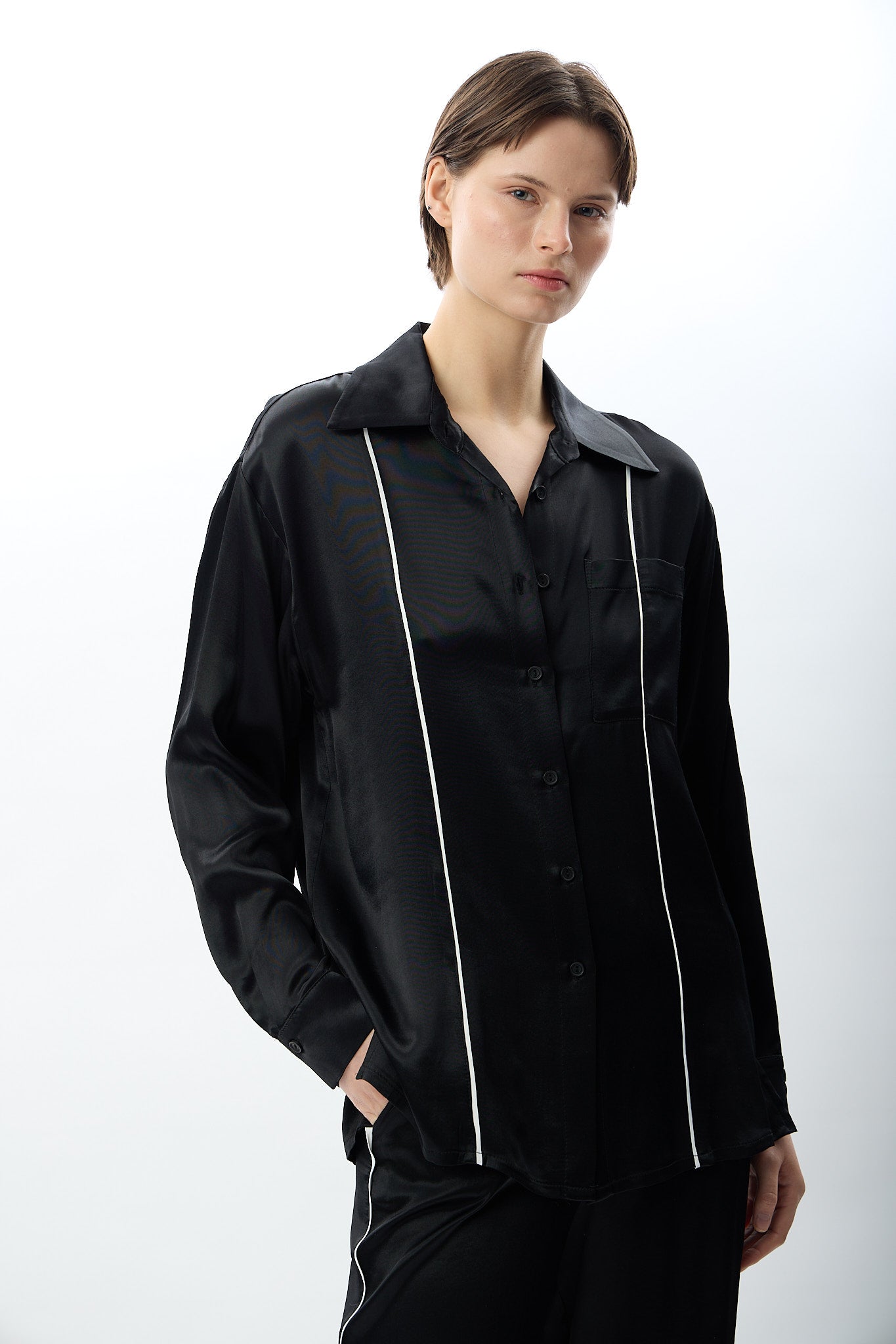 Uzun Kollu Tek Cepli Gömlek (Siyah)