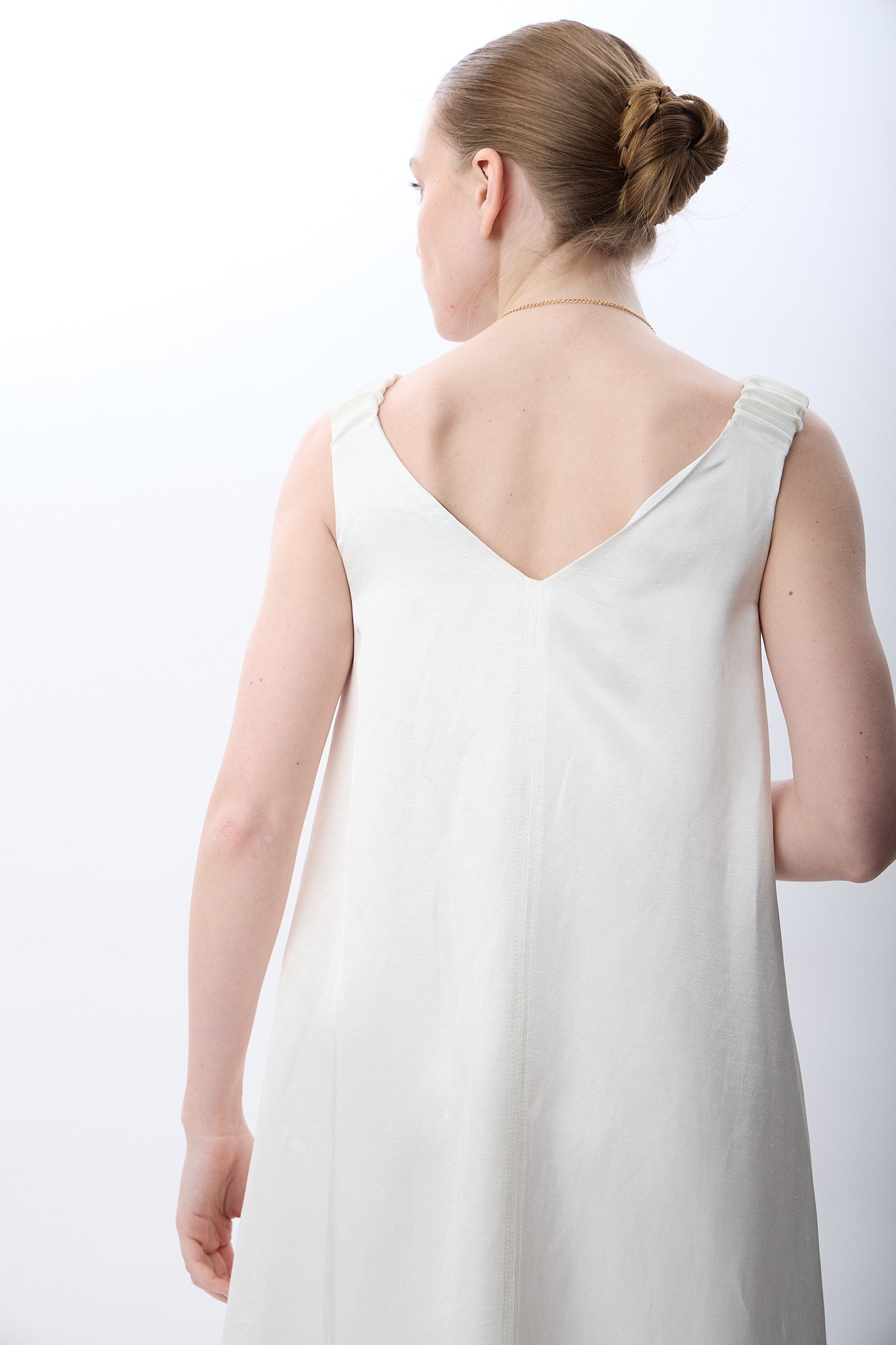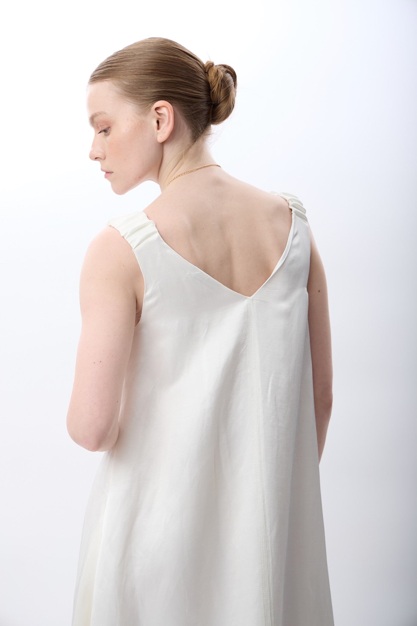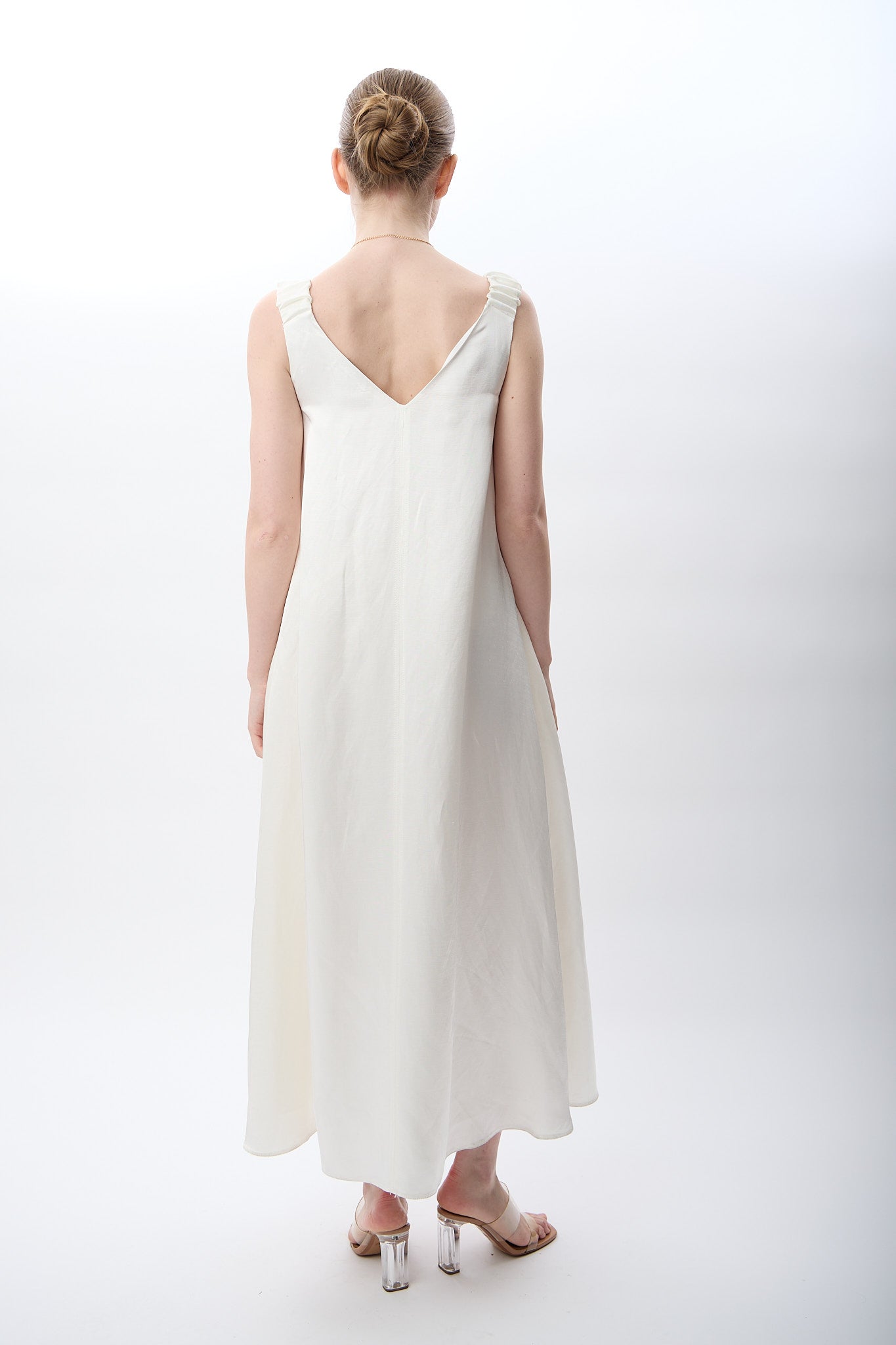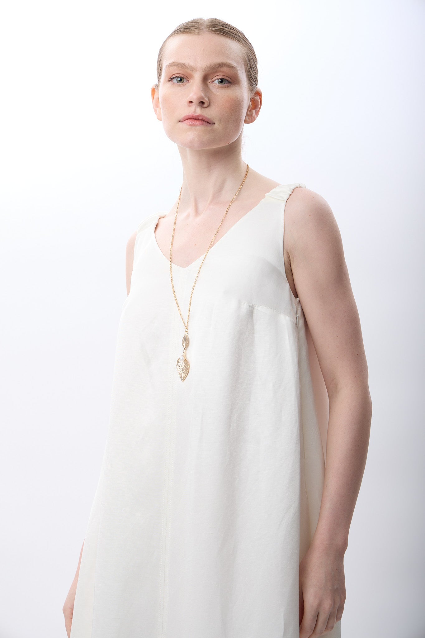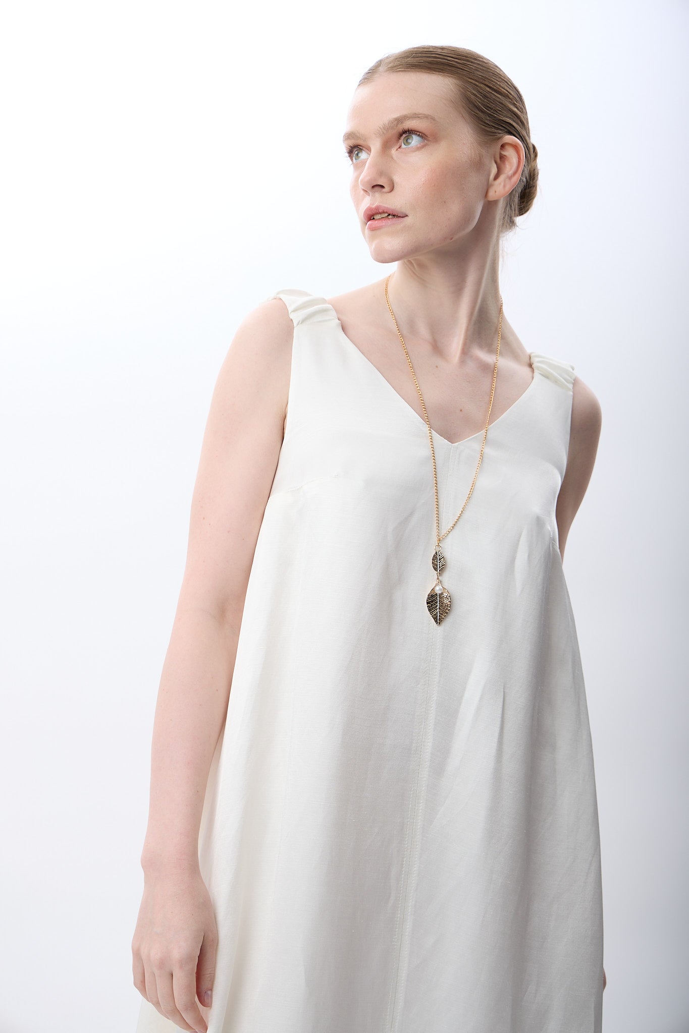 V Yaka Kolsuz Uzun Elbise (Ekru)