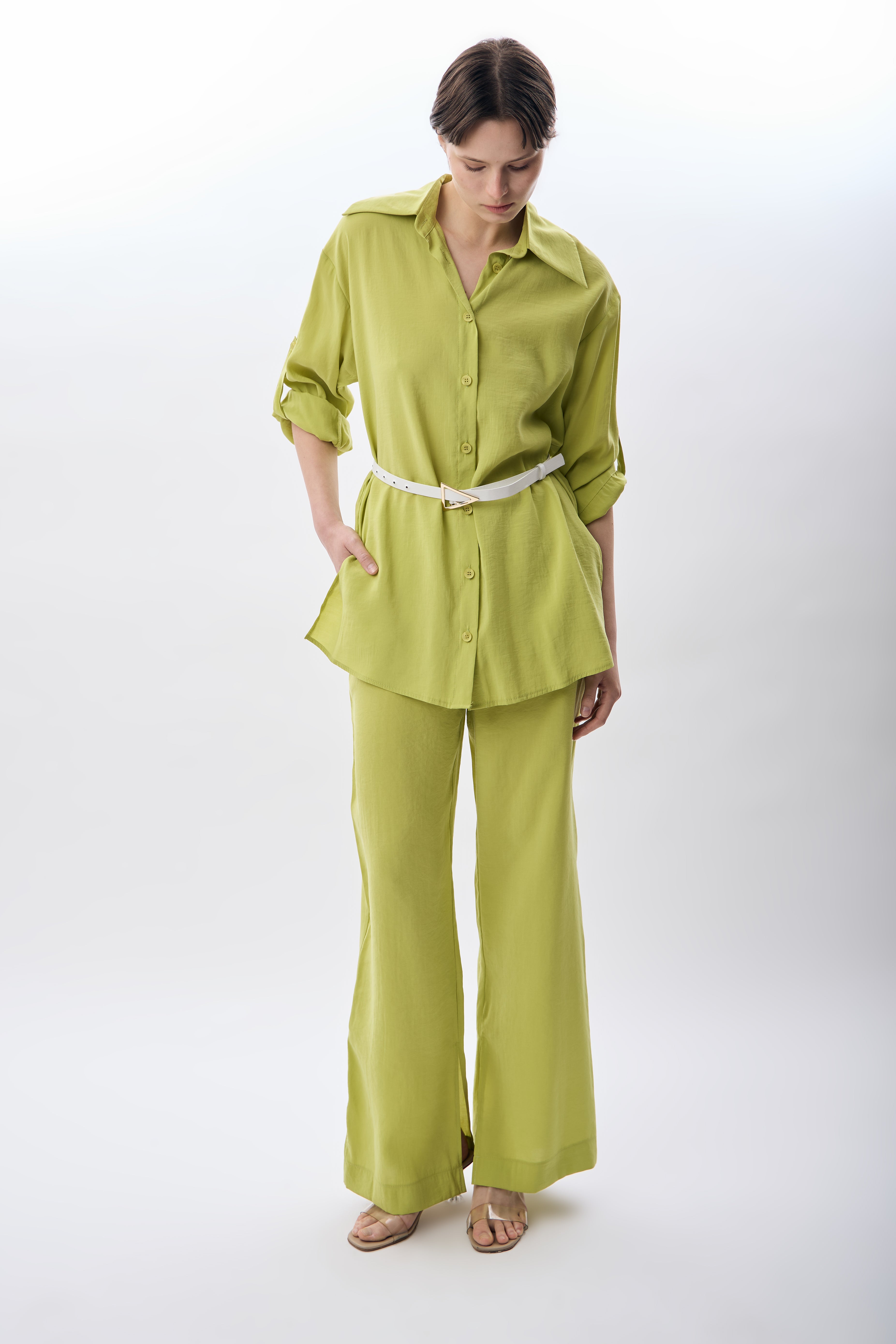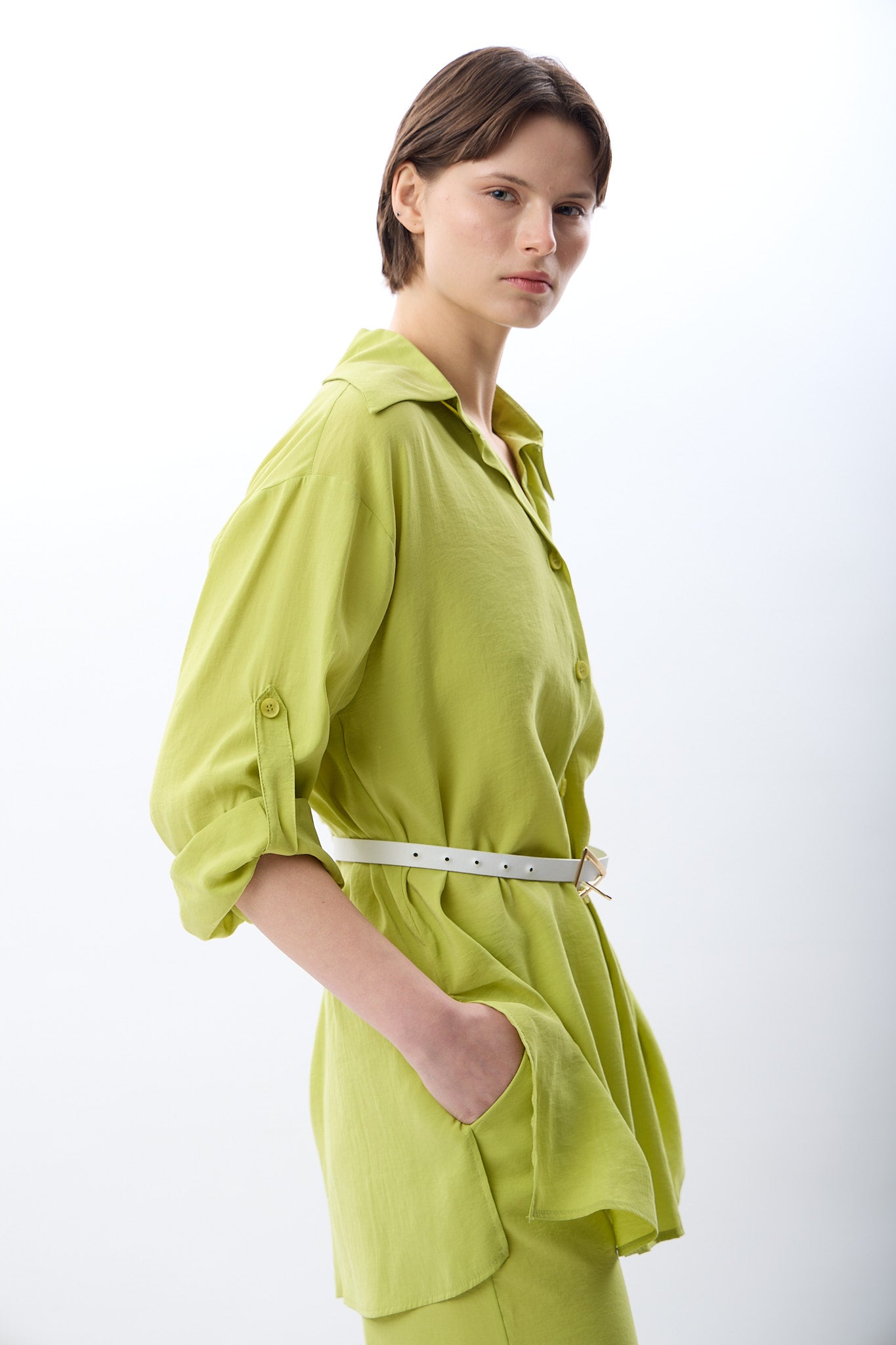 Yırtmaç Detay Kemerli Gömlek (Yeşi)