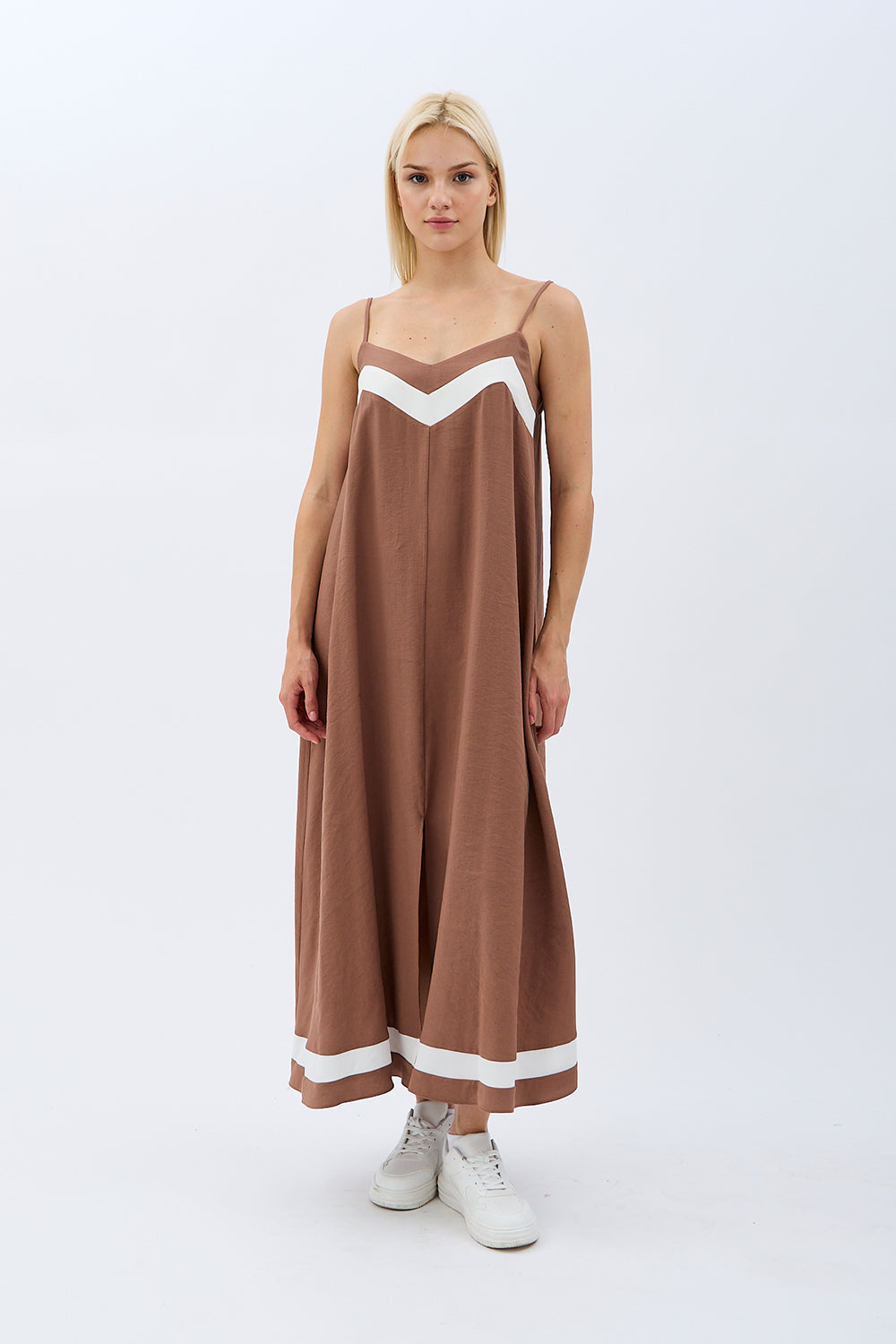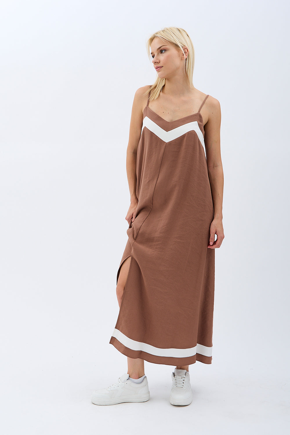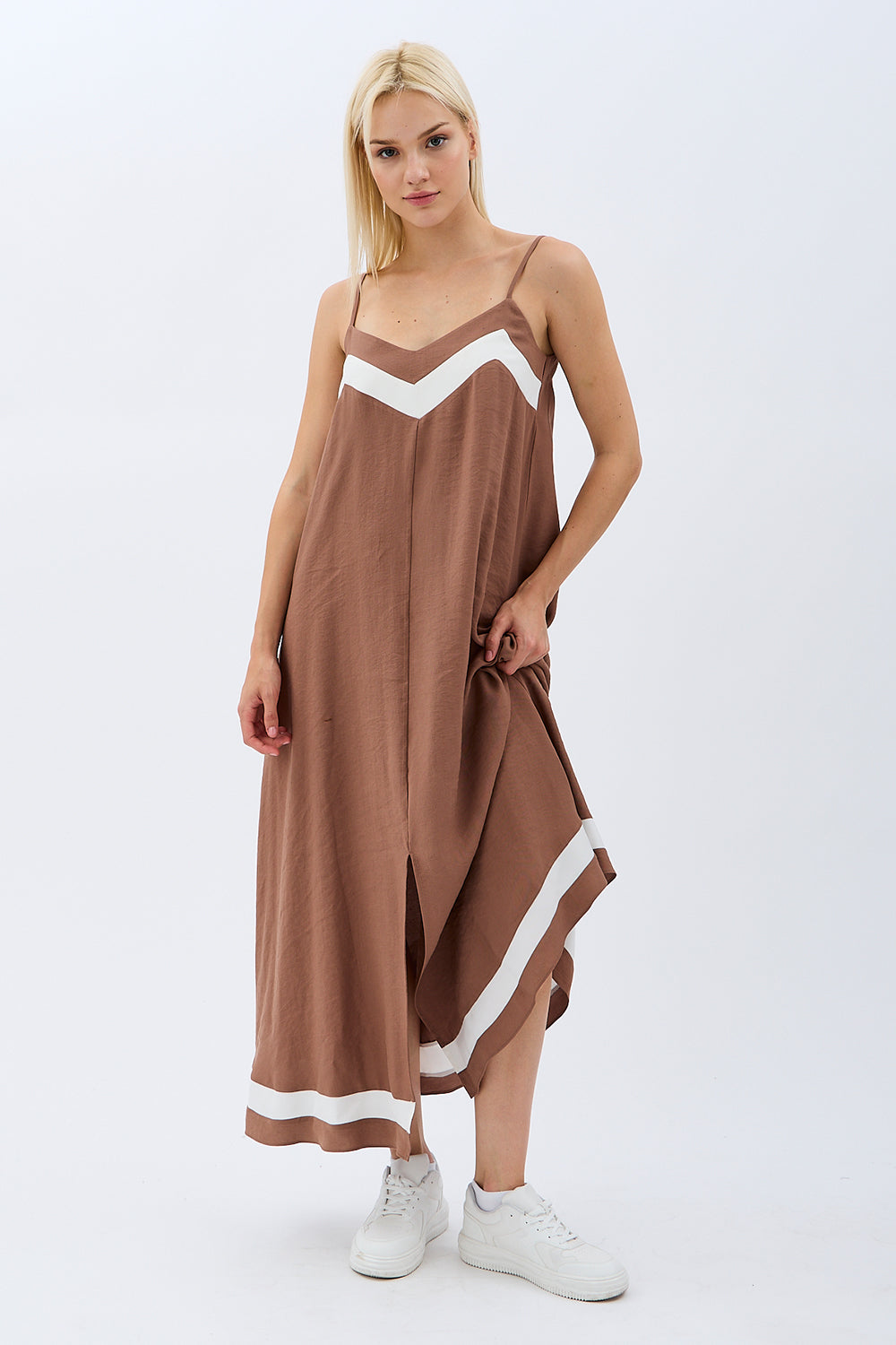 Yırtmaçlı Salaş Elbise (Kahverengi)