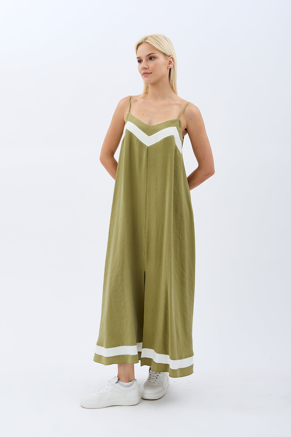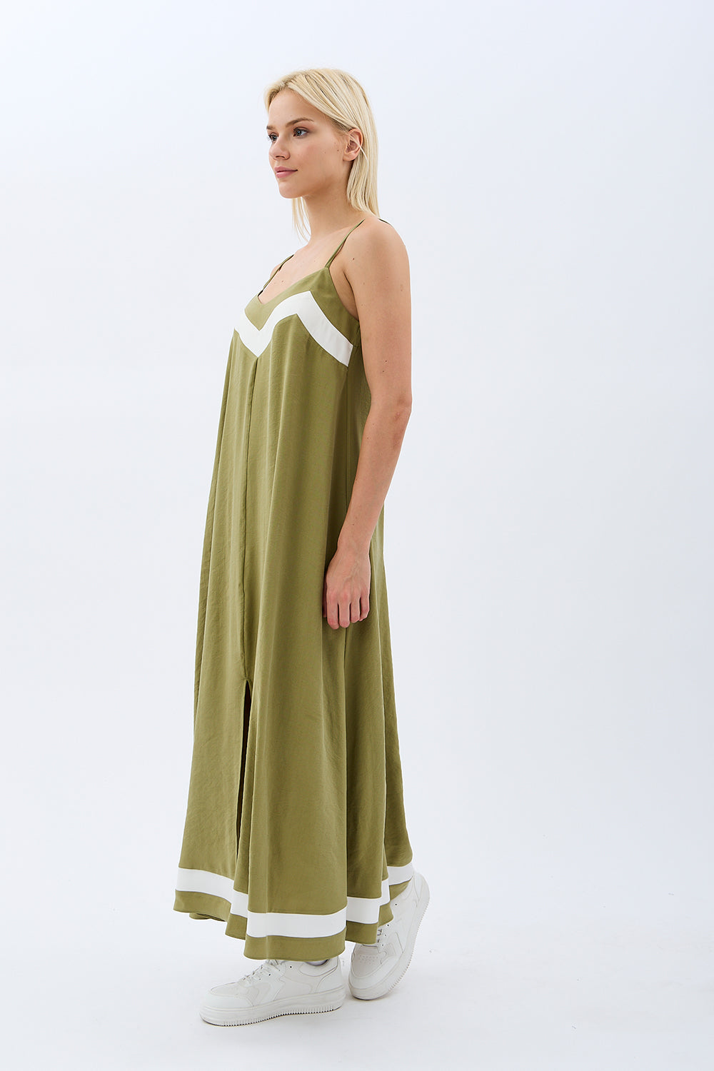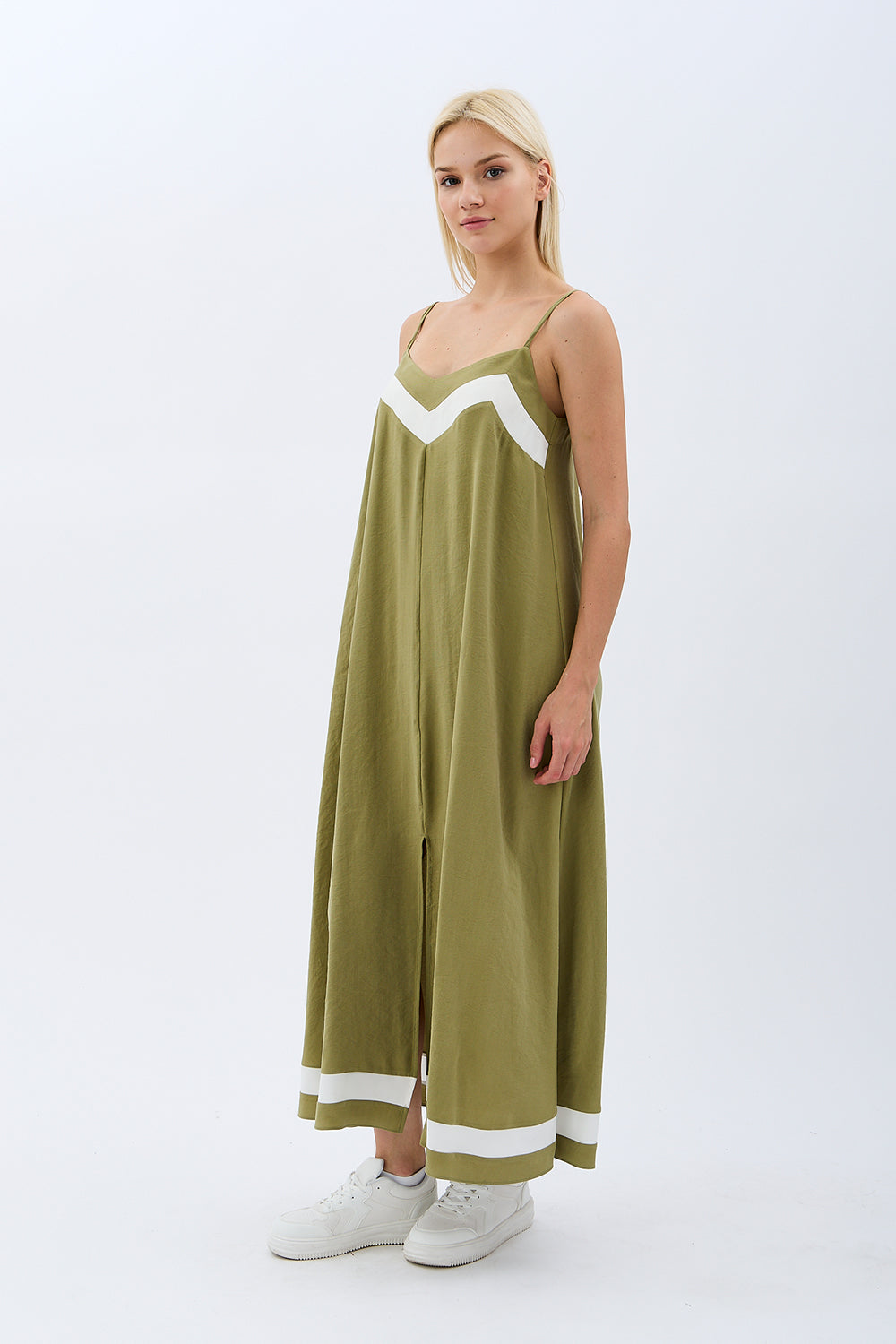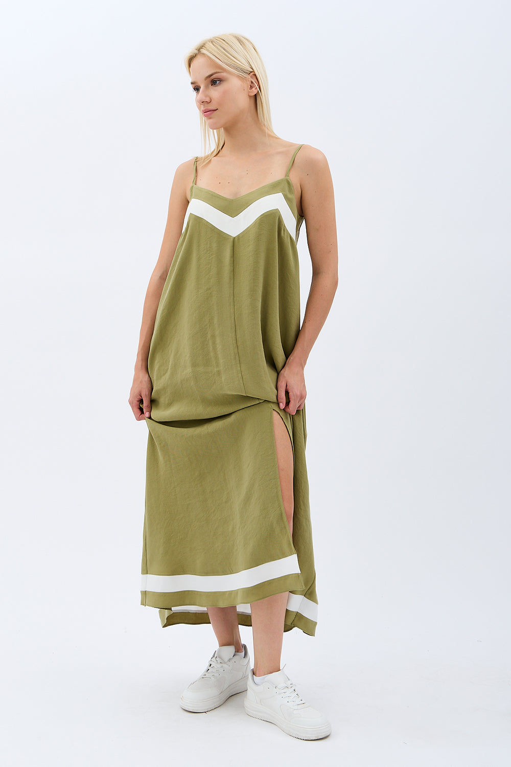 Yırtmaçlı Salaş Elbise (Yeşil)