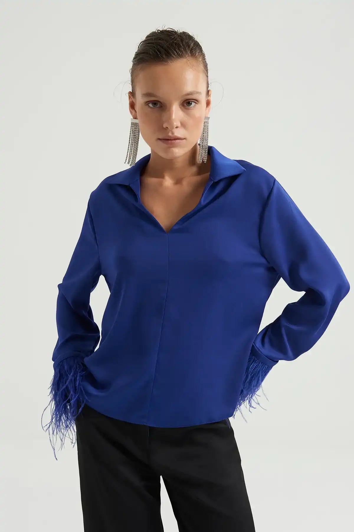 • Kolu Tüy Detaylı Şık Bluz Sax